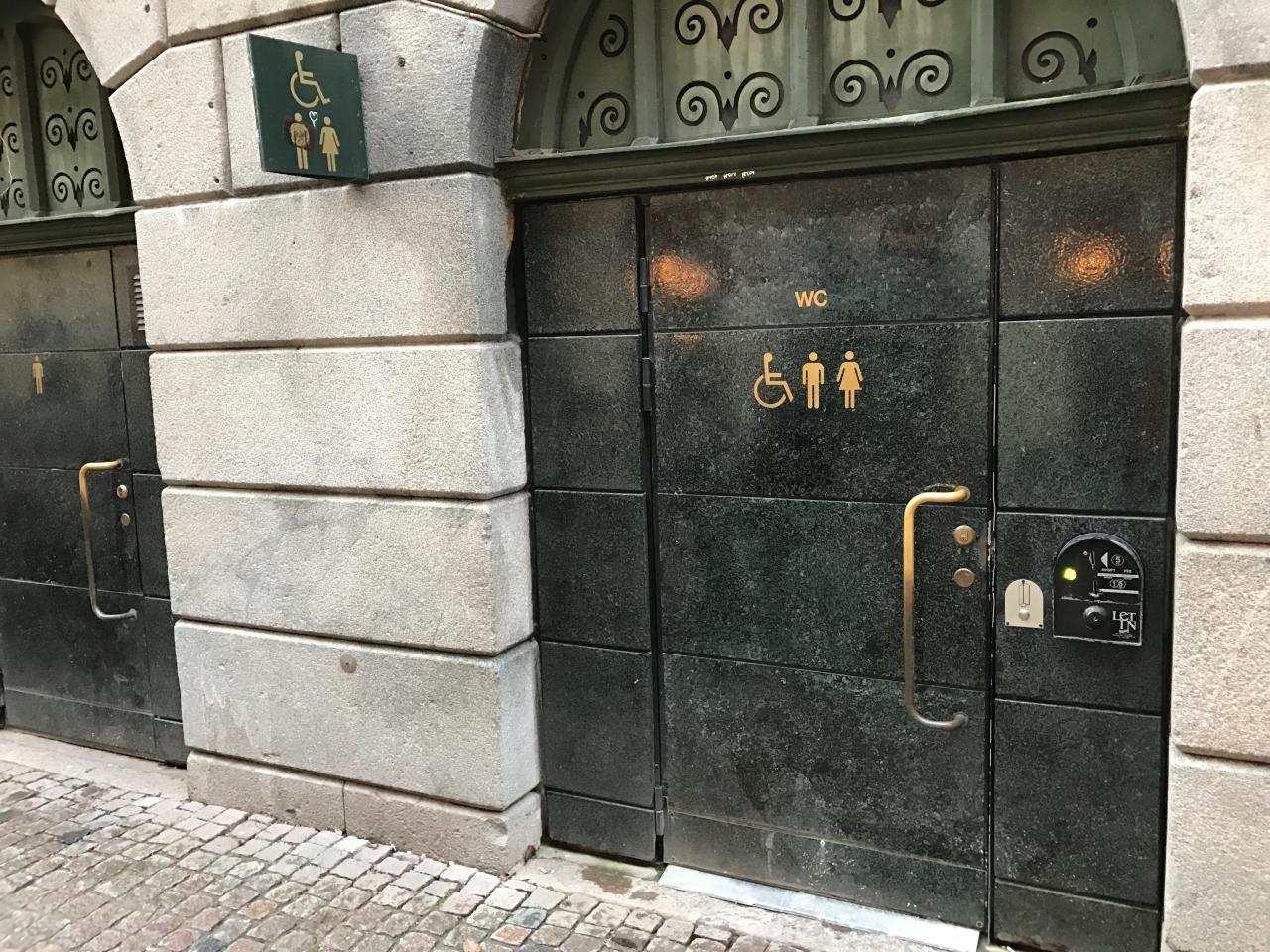 スウェーデンでは公衆トイレは有料な場合が多く、コインを入れてトイレに入ります。