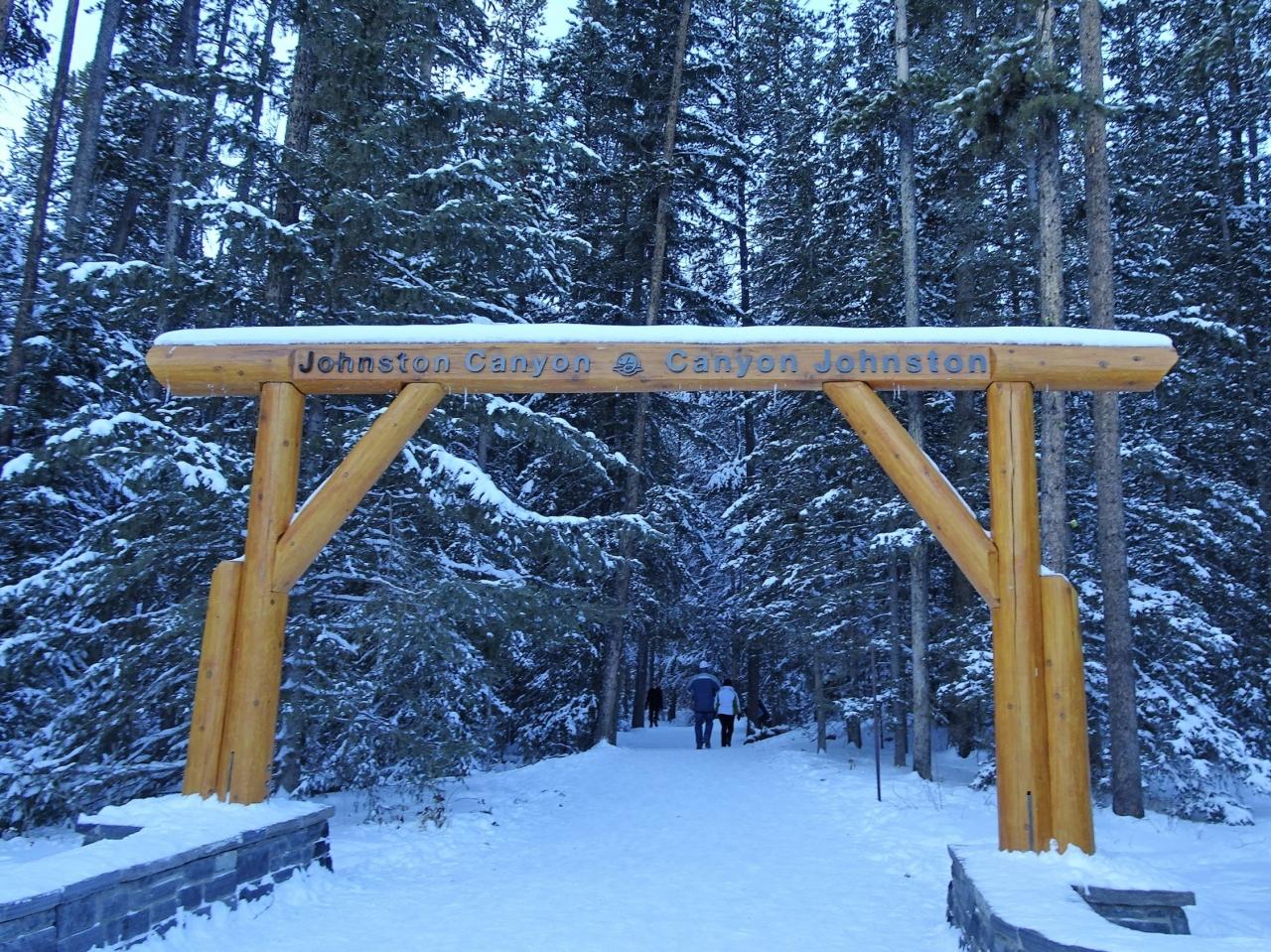 ジョンストンキャニオンの入り口。一本道なので、迷わず滝まで行けます。