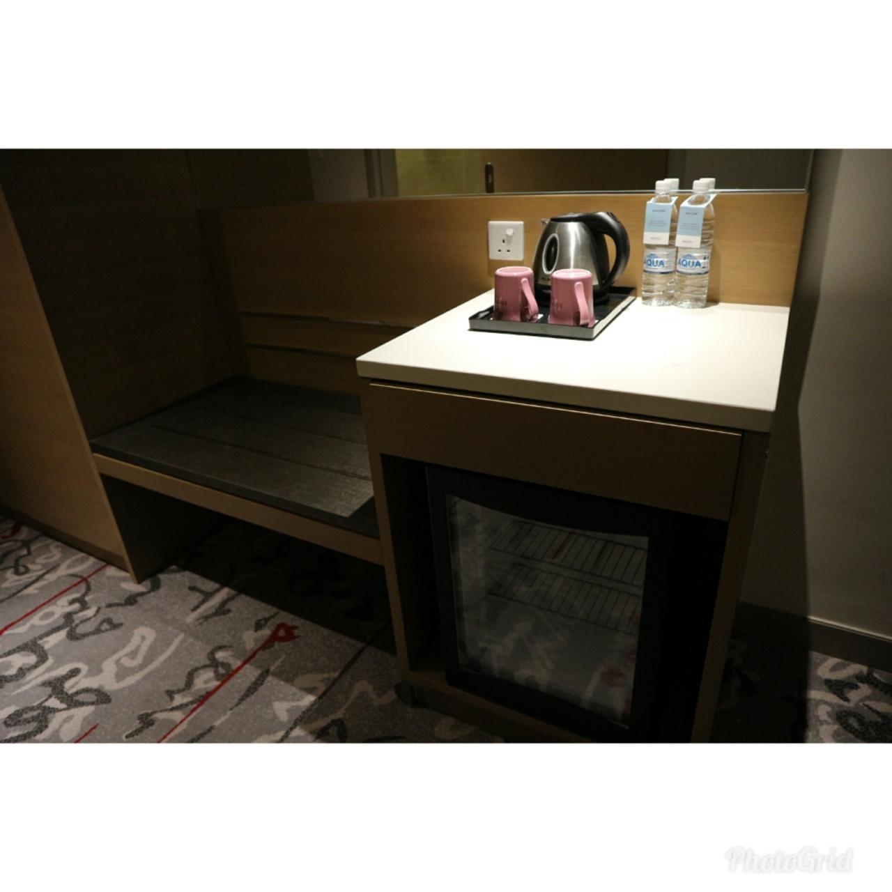 お水と引出しの中にはインスタント珈琲と紅茶。