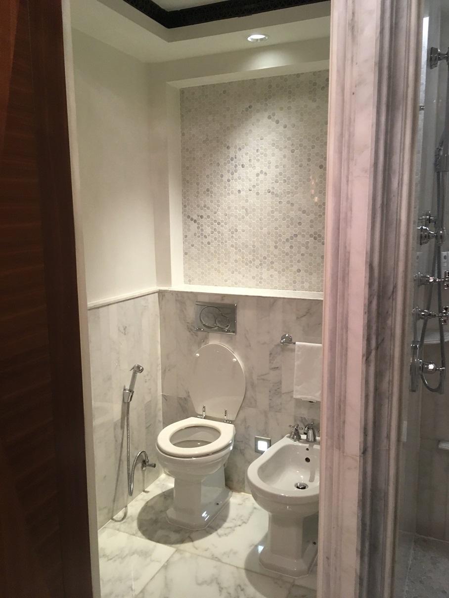 トイレとビデ。トイレのちかくの壁にあるシャワーは、アラブ式トイレの証拠。水圧が強く、水びだしになることが多かったので、使いこなすには慣れが必要。