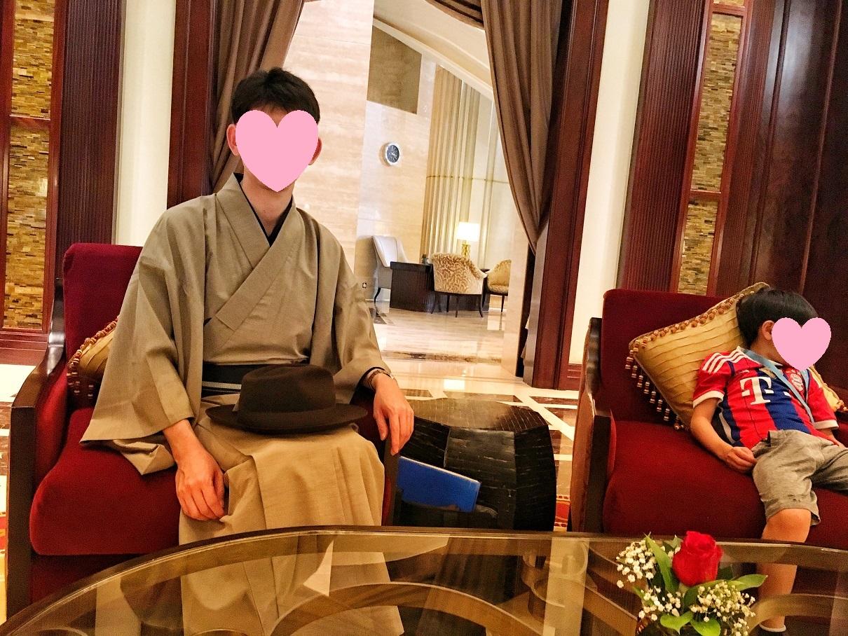 ベッドの反対側はこのような感じ。写真を撮っていたら、部屋のバトラーが挨拶に来ました。「何か困りごとはありますか?」と聞かれて、冗談で「子供が寝ないこと」と言ったら、「ナニーをお呼びしましょうか」と真顔で返されたので、あたふたしてしまいました(笑
