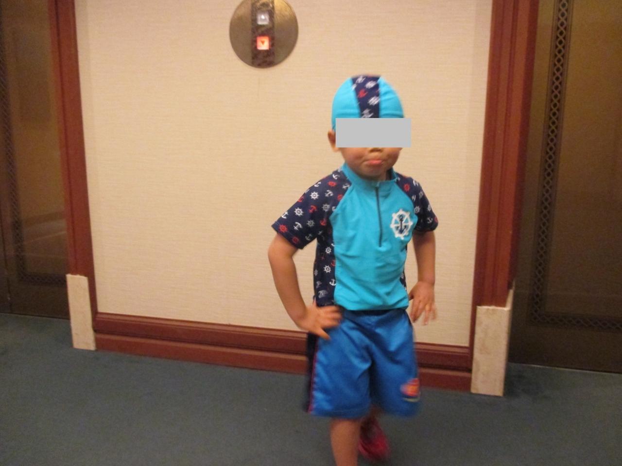 プールで泳ぐ息子君。