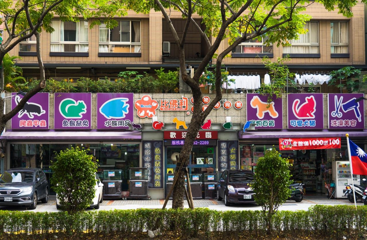 ペットショップや熱帯魚屋、日本の街中には比較的少ない文房具屋さんも何軒かある。