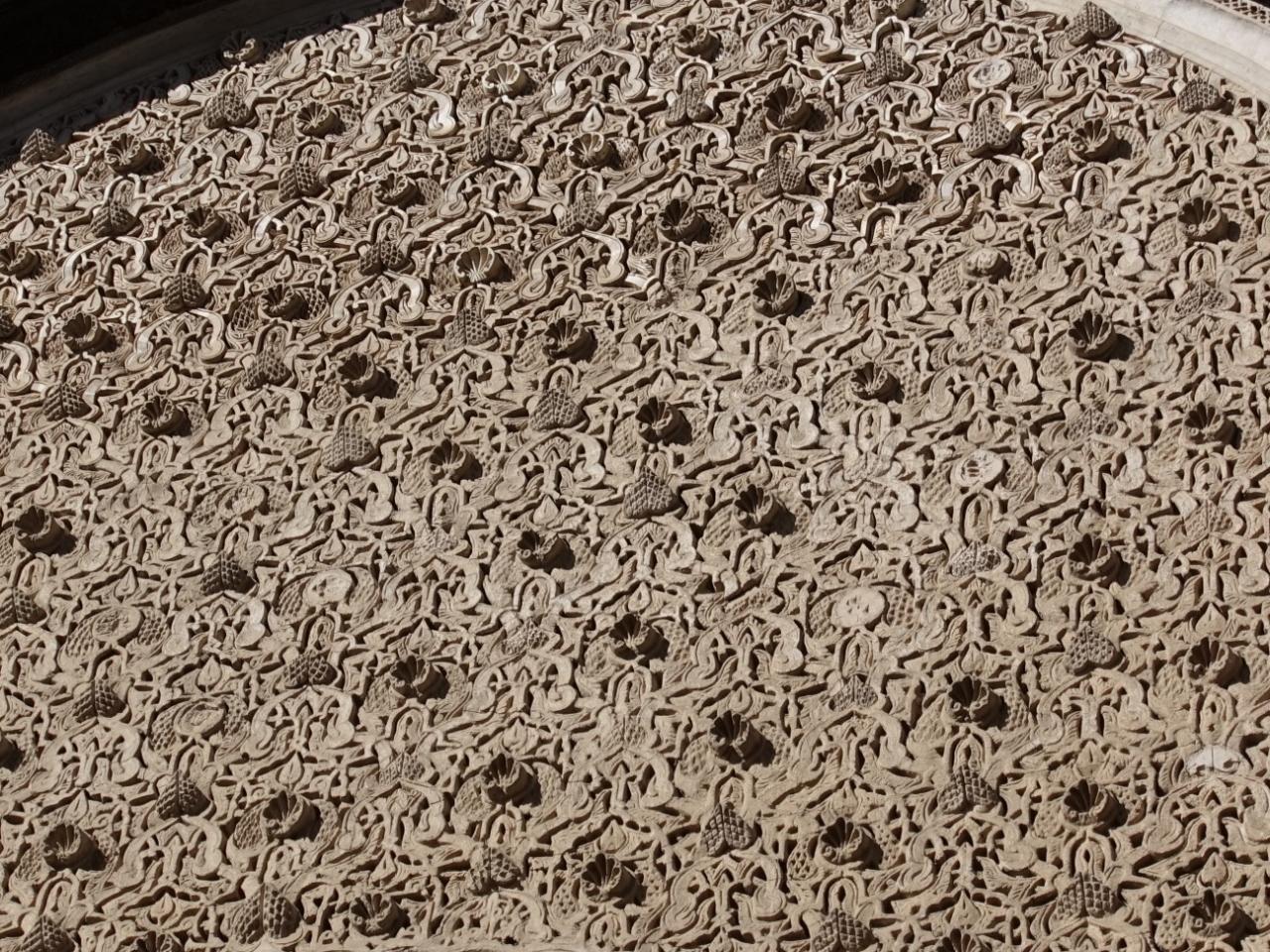 中庭をとりまくアーチ、そしてその上の装飾。ブー イナニア マドラサ 史跡・遺跡