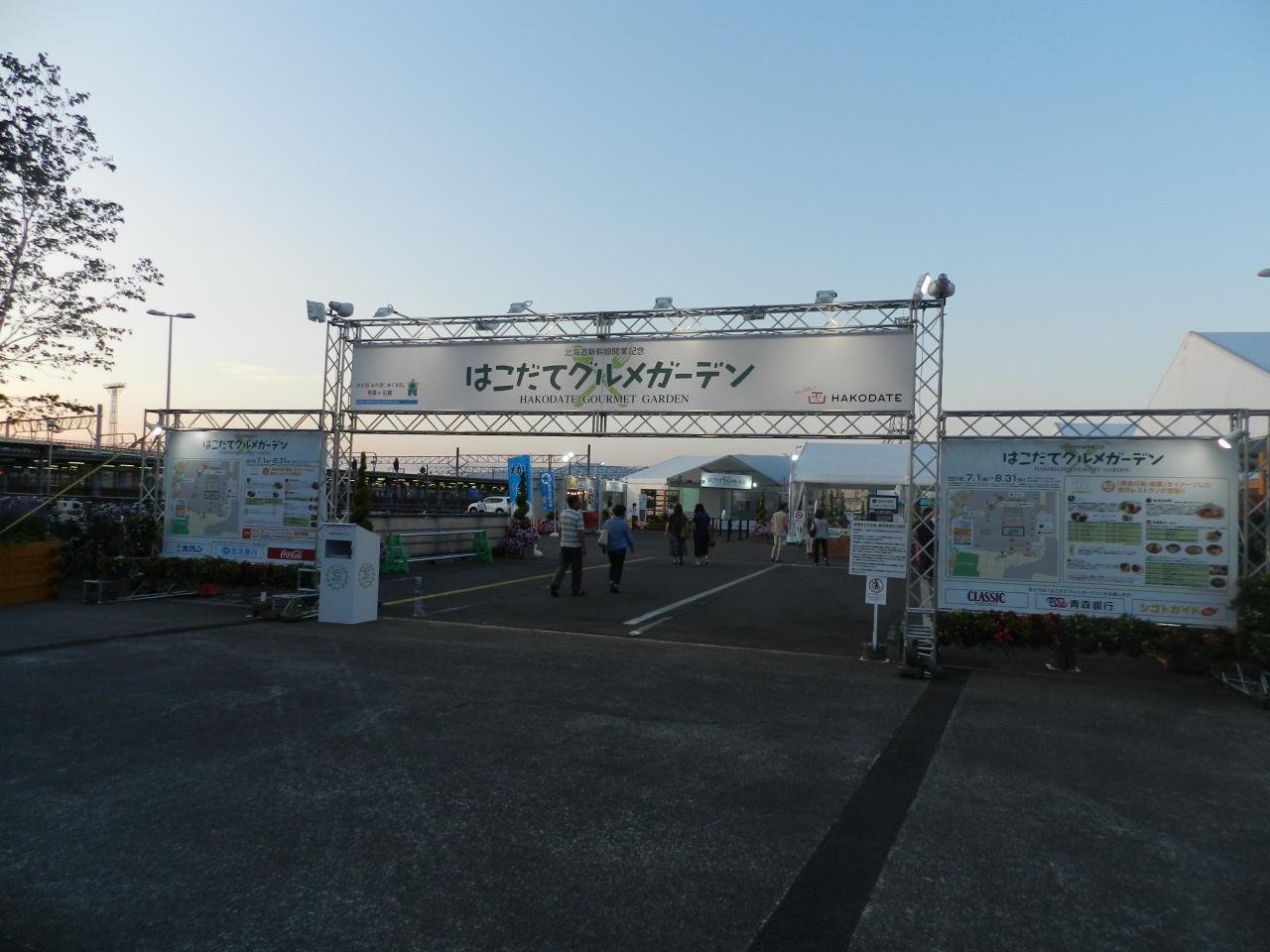 この日のお宿は1泊朝食の予約をしていたので、駅前で何か食べようと探していると、駅前に「はこだてグルメガーデン」と書かれたオープンスペースがあるのを見つけ、夕食はそこでとることにしました。