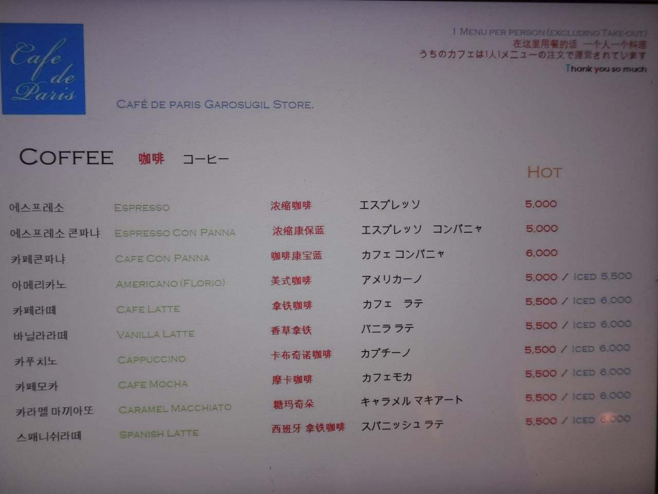 ◇ 韓国・ソウル 新沙洞 【Cafe de paris(カフェ ド パリ)】カロスキル店