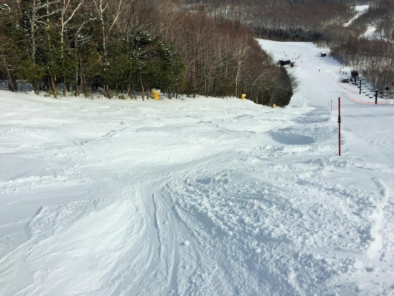 ずーっと休みなく滑ってコブ斜面を何本も滑ったのでこの1本で休憩にしたいです。