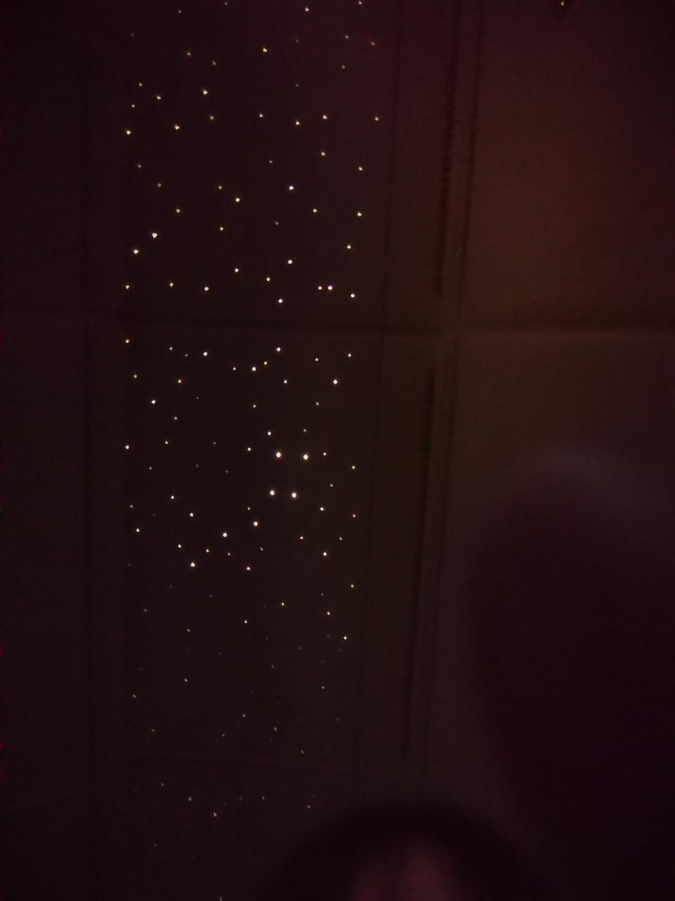 食事が終わってキャビンの灯りが落ちると天井には星空が…。