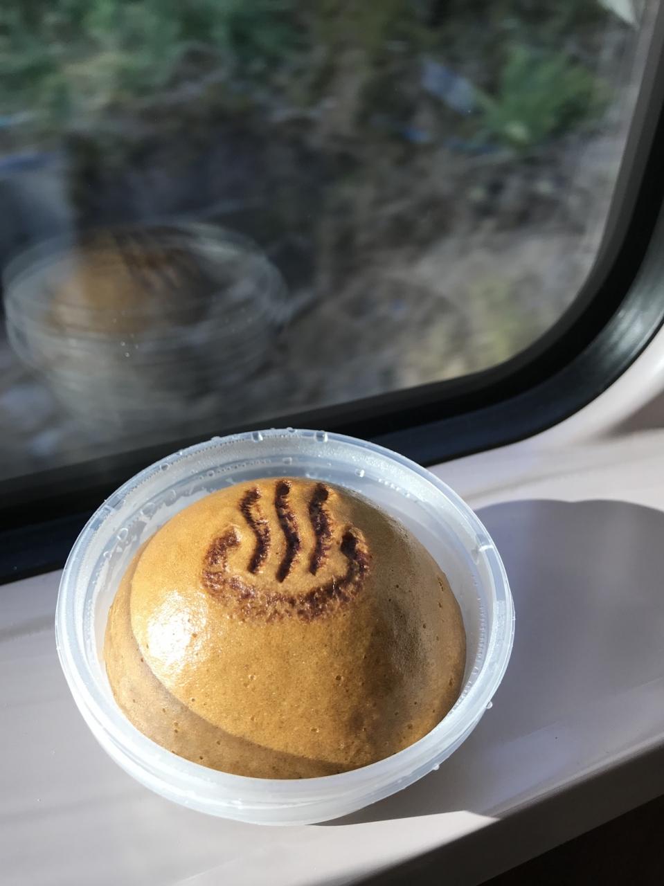 駅到着後、夫と温泉まんじゅうをゲットしました。