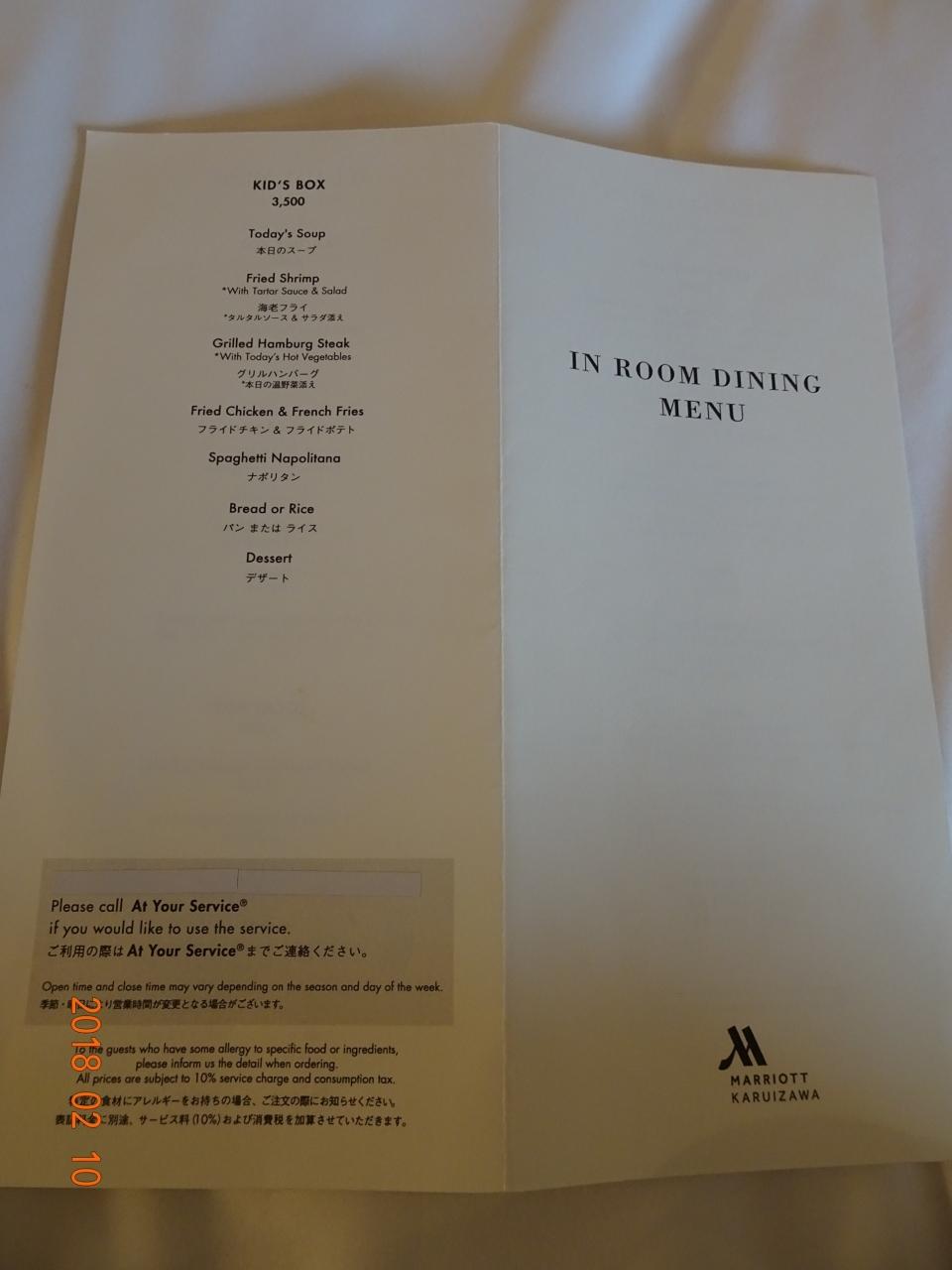 なので、ルームサービスを調べてみました。 -