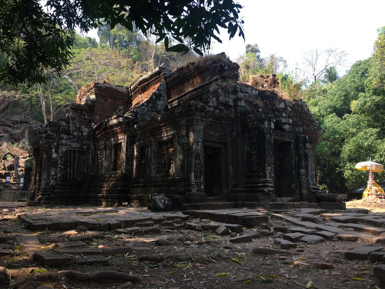 これがワットプーの本殿。クメール遺跡。建物自体はこじんまりとしているし崩壊が激しいけど、一千年ほど昔の建物という事を考えるとすごい。