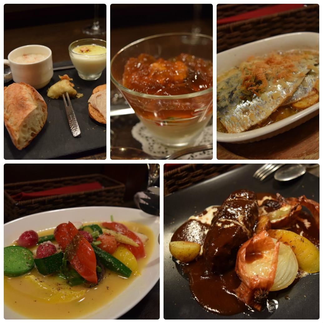 アミューズ、オマールエビのジュレ仕立て、イワシのマリネ、温野菜、牛頬肉赤ワイン煮♪
