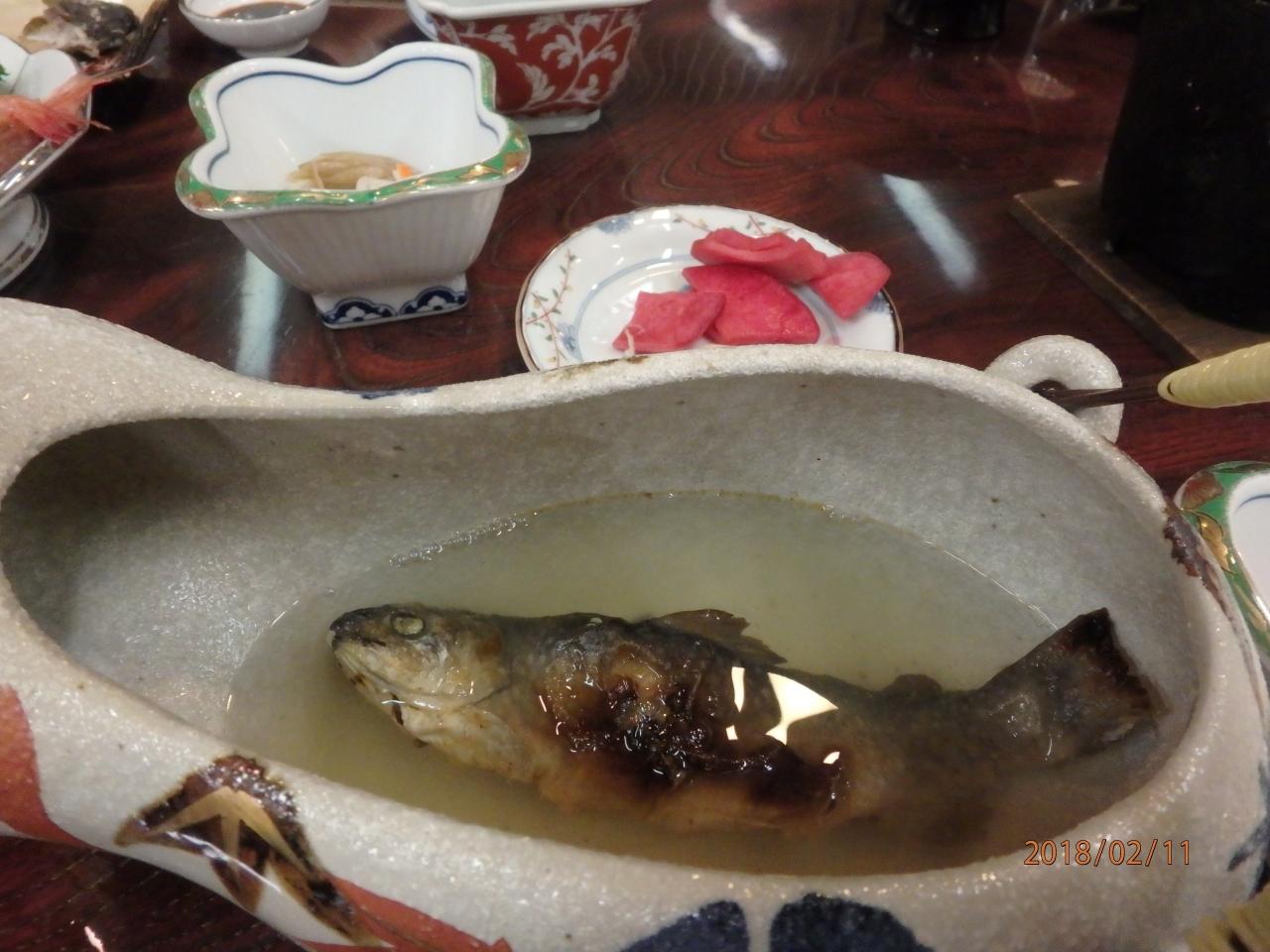 イワナの焼き、奥飛騨らしい、山菜。 -