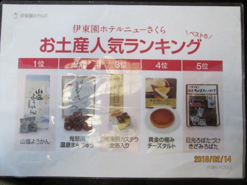 お土産人気ランキング 1位山塩ようかん、2位温泉まんじゅう。