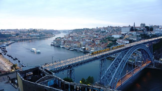 まずは夕暮れの街を散策をし、ドウロ川や街を一望できるポルト大聖まで・・。夕暮れ時で空が薄い赤が混じった色合いになり、オレンジの屋根が特徴的な街と同化していくような感じがとっても美しかったです。ずっとみていたいくらい・・・。お次はドンルイス1世橋を拝むことができる修道院に再訪。ちょうど街に灯りがともされて、陽が沈んだ後の柔らかい青色との色合いがなんともいえない優しい雰囲気ででした。夜景を見ながら、ドンルイス1世橋の1階のほうから対岸にわたりました。20時すぎていましたが、まだほんのり明るいのがうれしかったです。