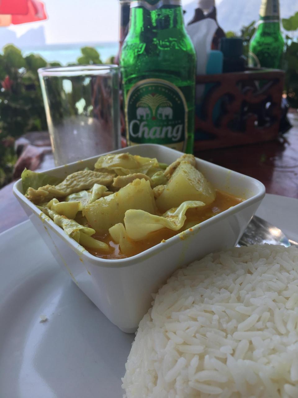 イエローカレーとチキンサテ。どちらも美味しかった!570THB