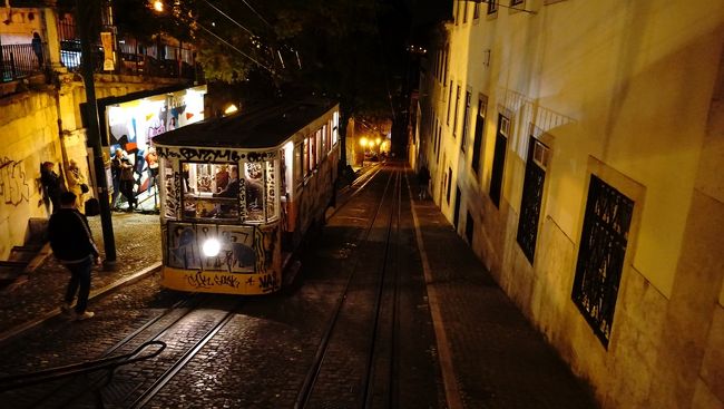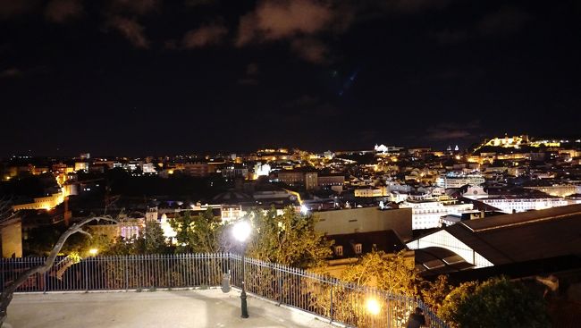 十分に堪能した後は・・・サン・ペドロ・デ・アルカンタラ展望台に登るためにロシオ広場の端から乗車できる路面電車に乗り展望台へ!夜景に路面電車がよく合います。こちらの展望台からはサンジョルジュ城などが拝めました。夕暮れ時を狙っていましたが、すっかり日没後でしたが・・・