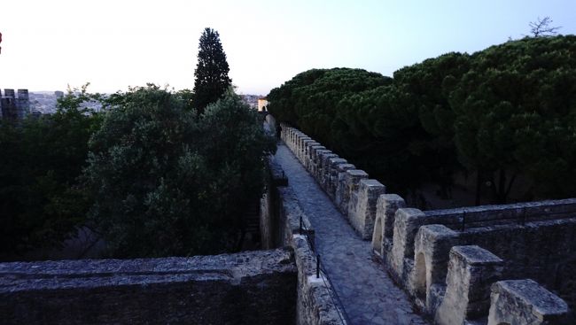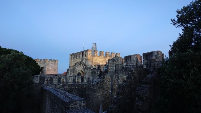お次はサンジョルジュ城へ。冬季は18時までですが、この時期は21時まで入場できるのはうれしいです。8€は痛いですが、紀元前2世紀ごろからこの丘の地形を利用した要塞化が歴史として残っており、いろいろな文化・民族によって侵略など影響をうけていたこの場所は必見です。1370年代に城壁が建設されて以来、地震の影響を受け改修・新築などを経て現在にいたるようです。いろいろな文化の影響を受けている城壁はシンプルですが美しかったです。またサンジョルジュ城からのぞむテージョ川とリスボンの夜景はとっても美しかったです!