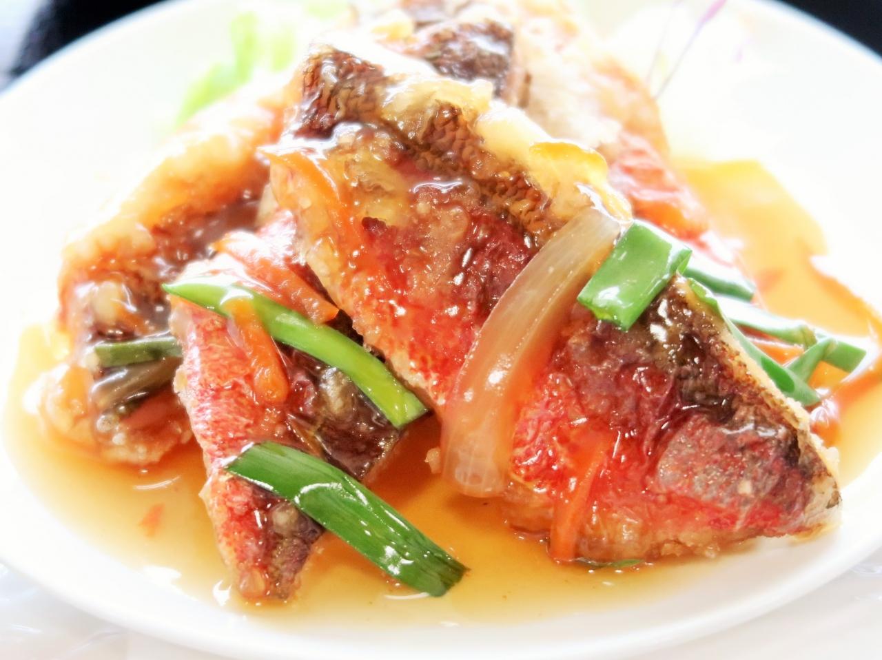 沖縄-21 グルクンの唐揚げ定食:OPメニューで ☆斎場御嶽の解説映画も