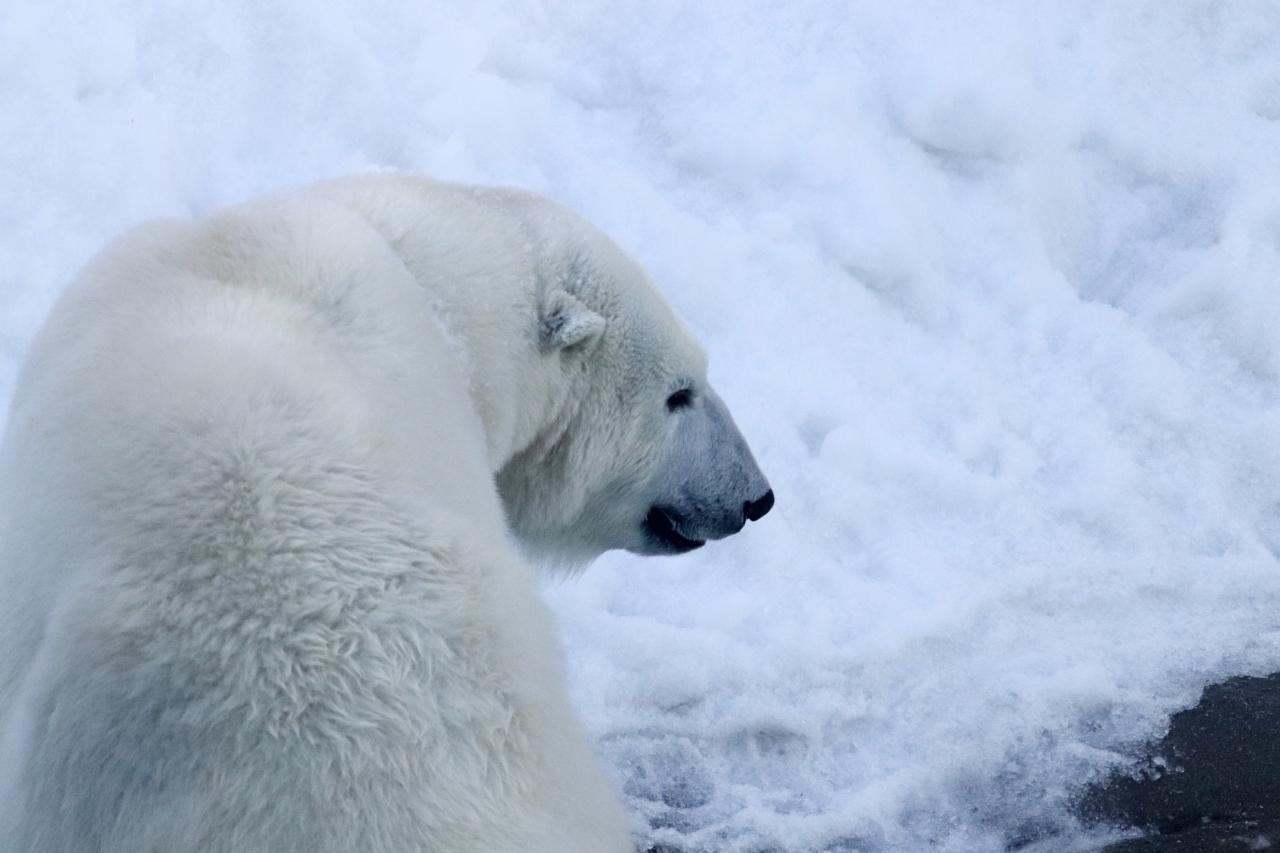 太い檻越しなので写真は撮らなかったのですが、このときは、サポーターさんの特別ガイドツアーで、ツアーのみなさんが運動場の人工雪山にミユキちゃんのおやつを隠しているところでした。 -