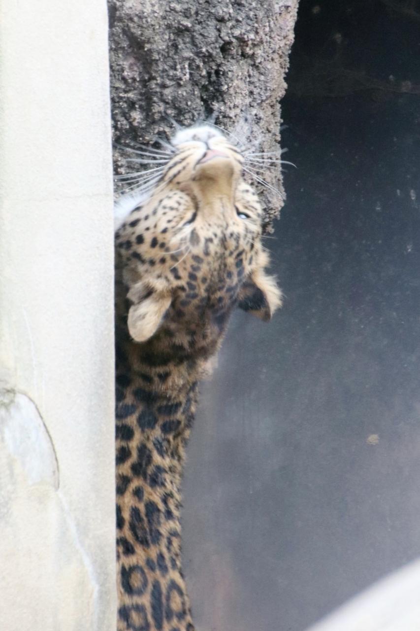 アムールヒョウは、夕方、ペアで出ていて、はじめカップルか兄弟かと思ったのですが、一方の子がえらくなつっこく、可愛いらしいしぐさをしていました。