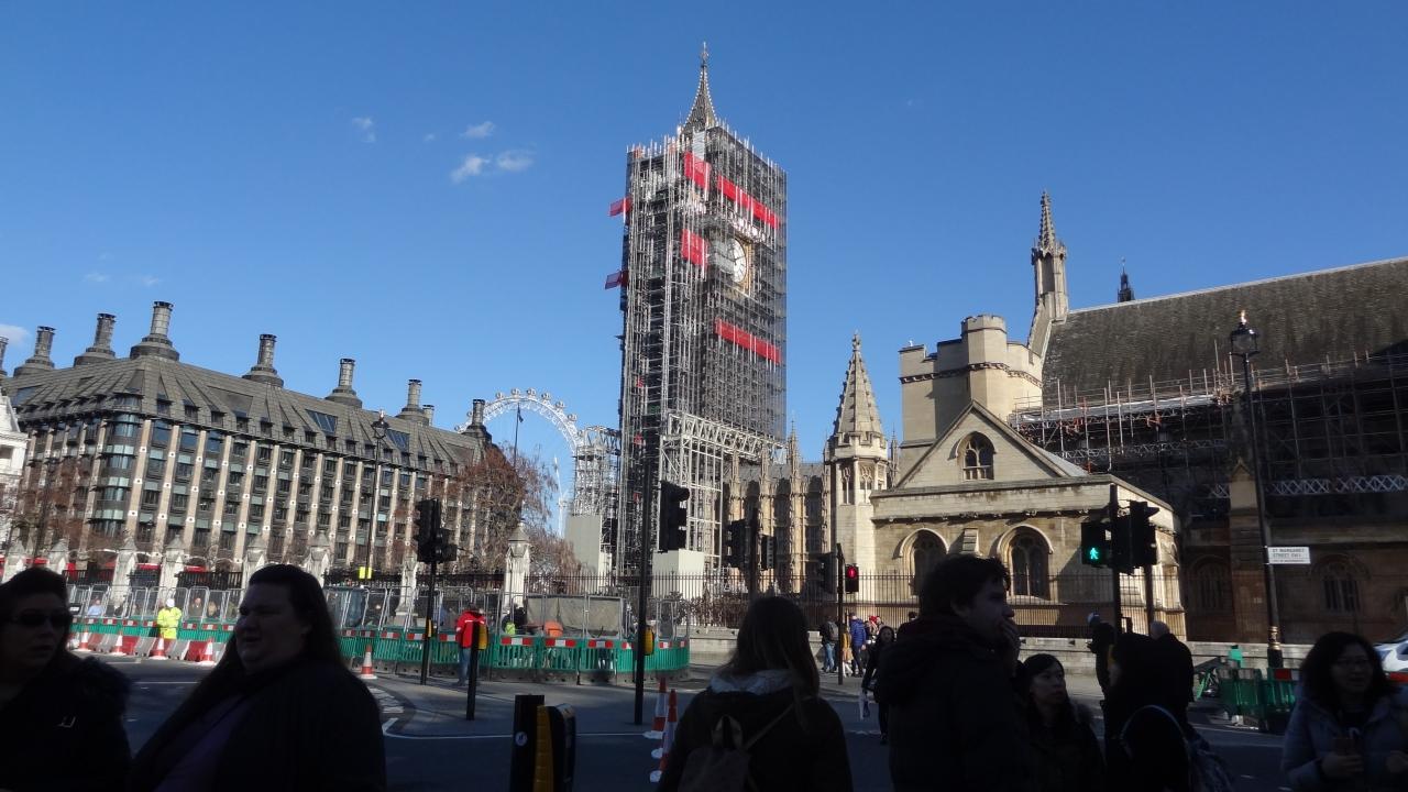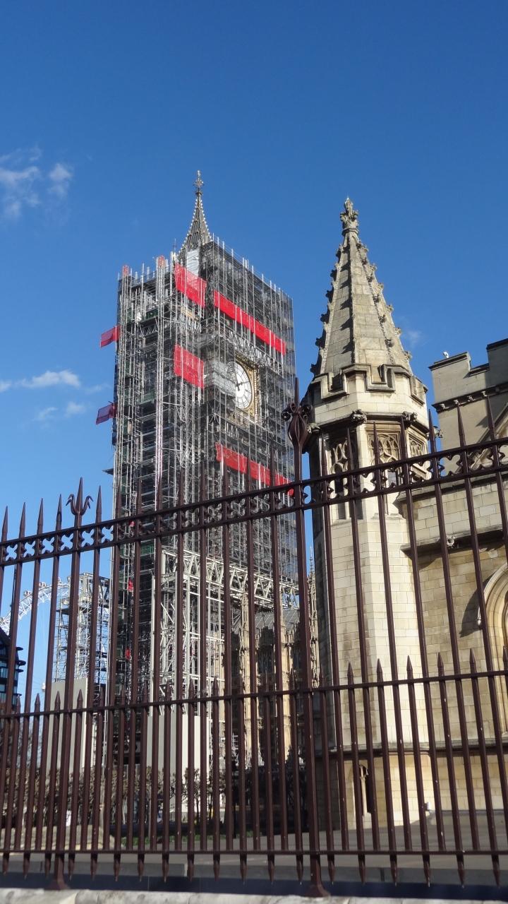寺院の側からはこんなに近くにビッグベンが見られます。工事中の貴重な姿。