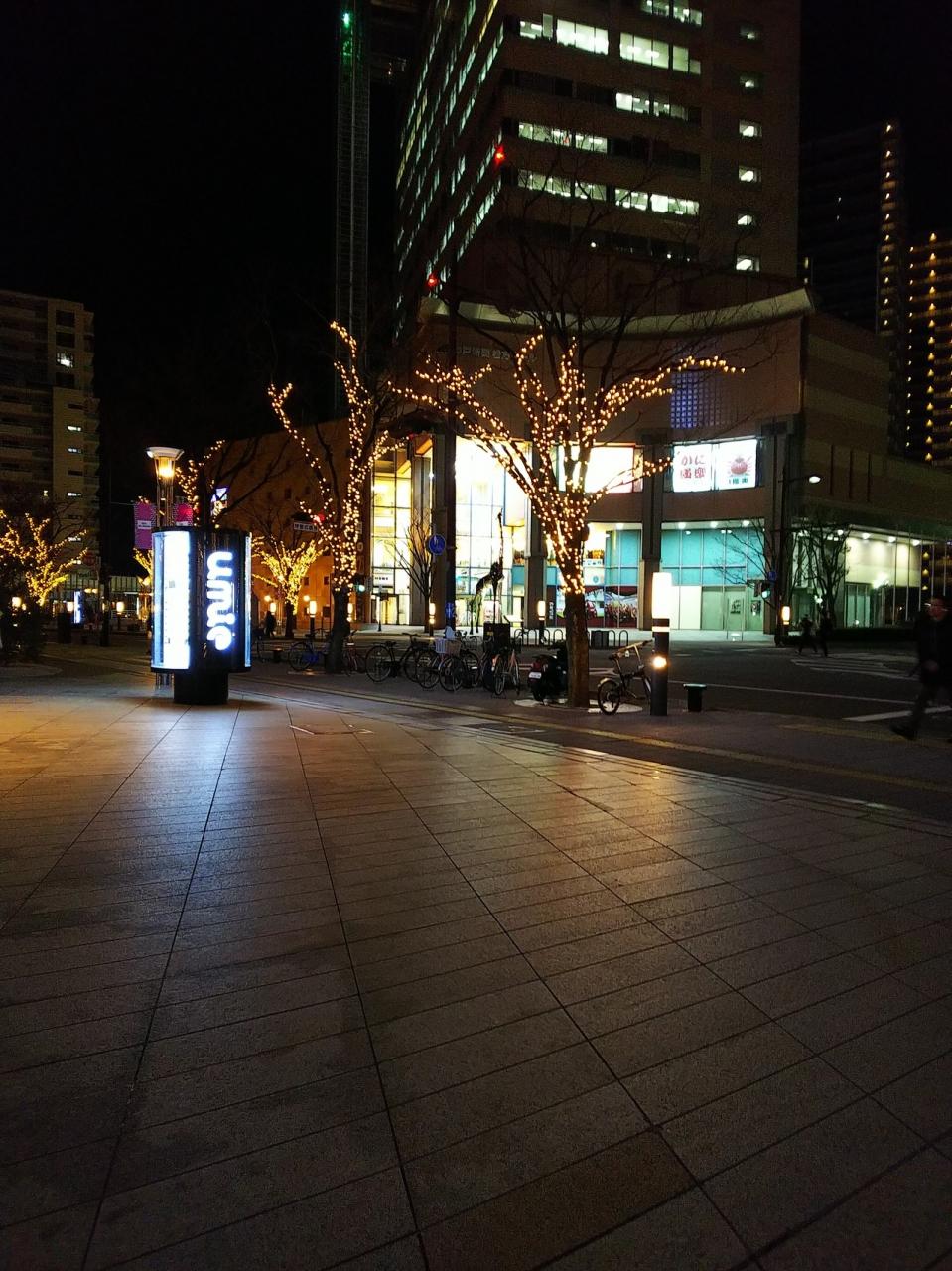 イルミネーション輝く道を戻ります。 -