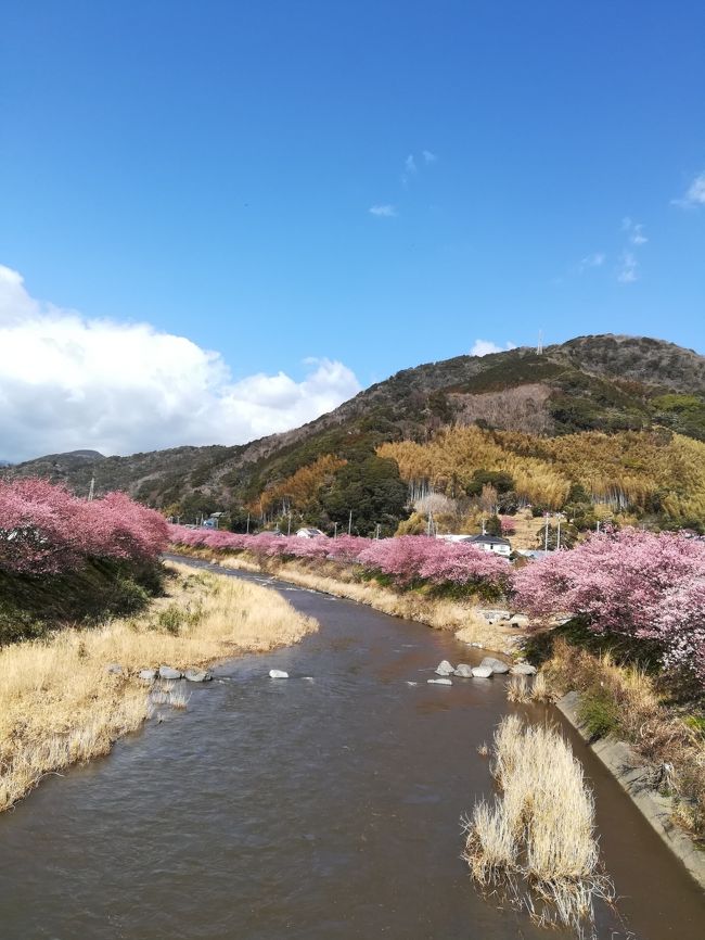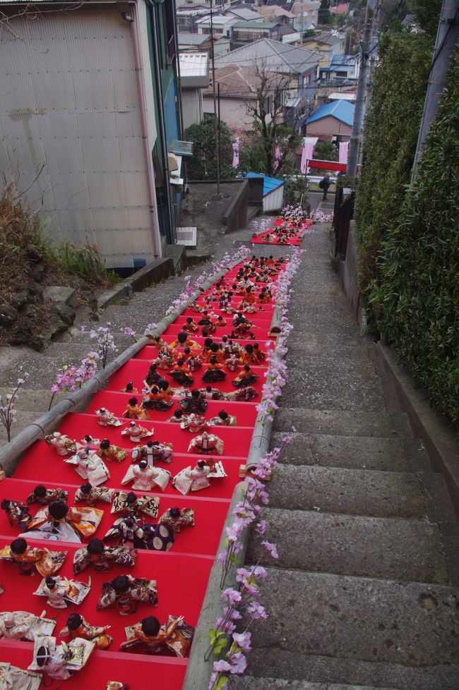 春一番が吹き荒れる中、雛祭りと河津桜を見物