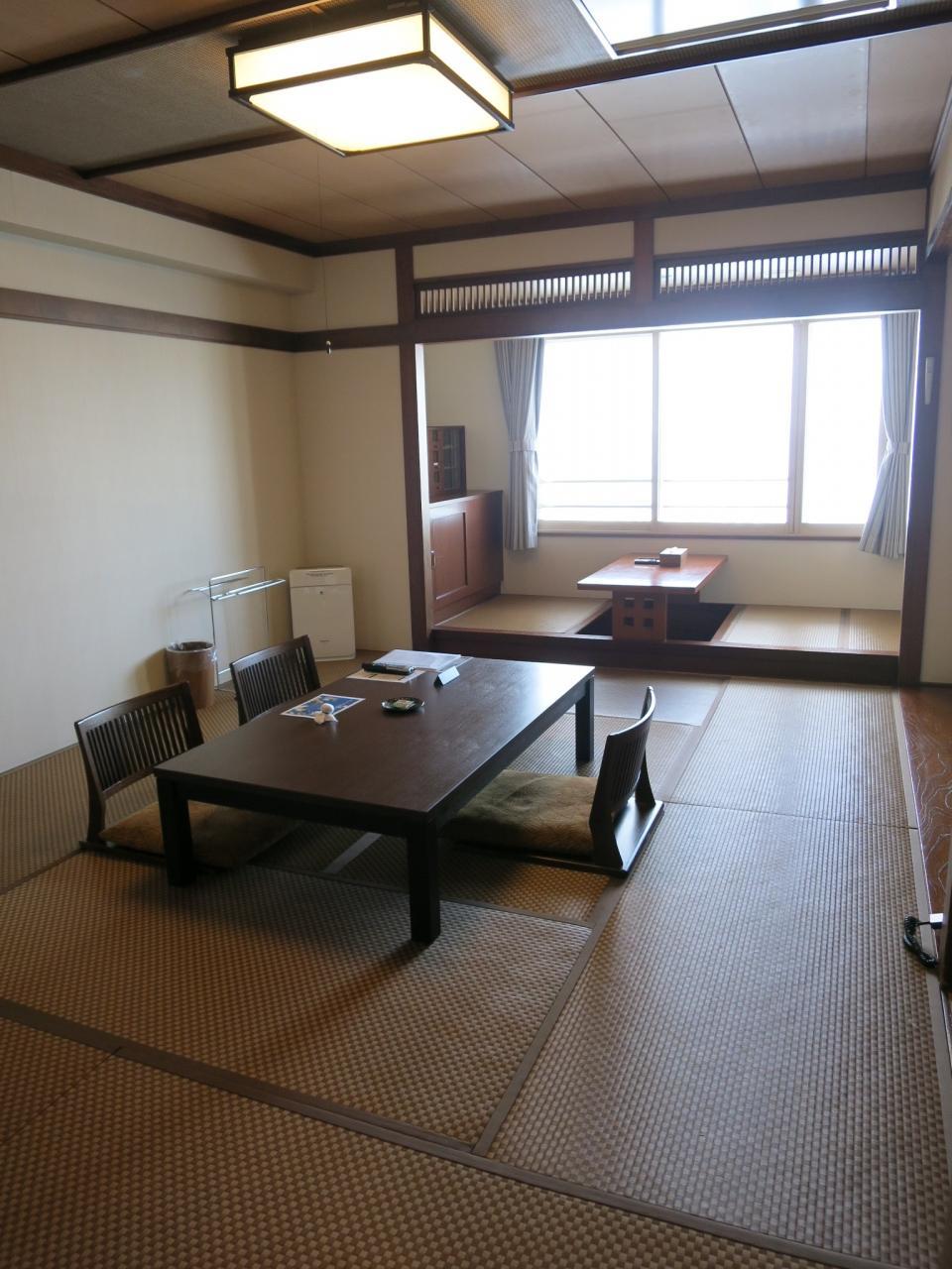 窓際のテーブルは掘りごたつ式・・・お部屋では珍しいね