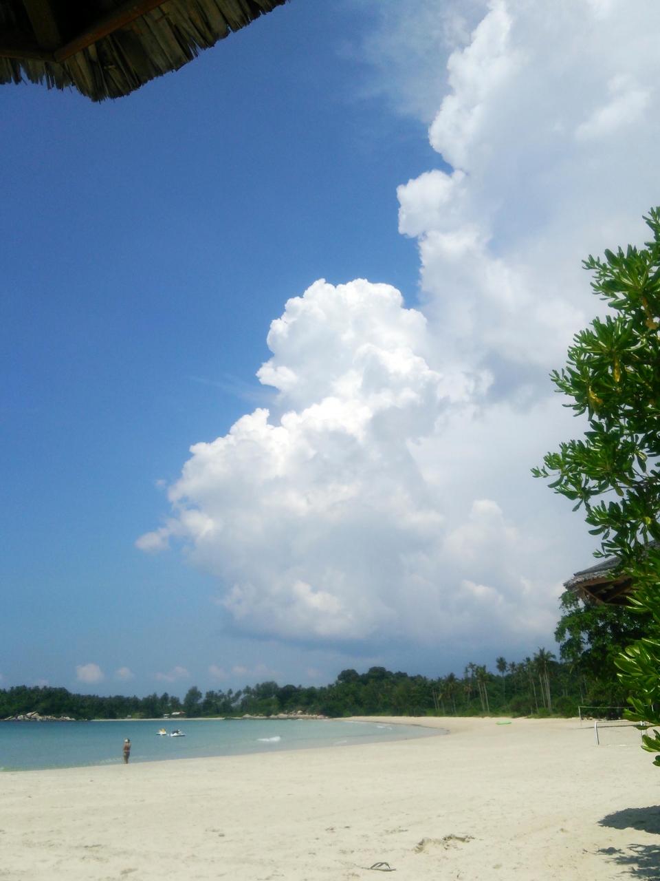 向こうから、入道雲みたいなもくもく雲がやってきた。スコール降るかな?