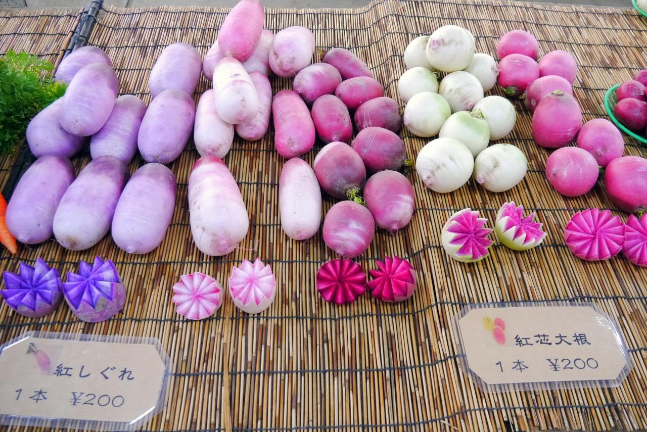 こんなにカラフルな大根が並んでいると壮観ですね~。 -