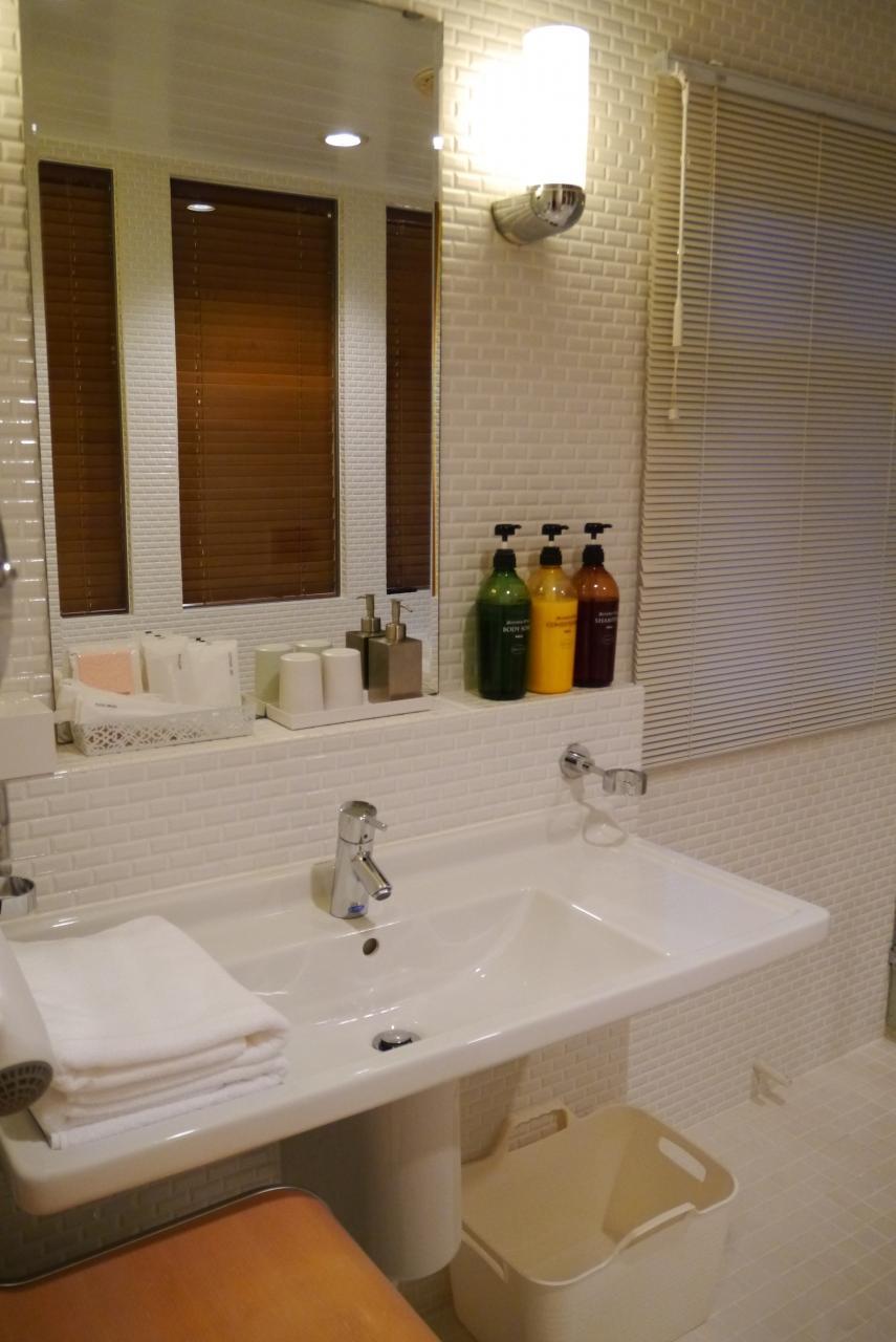 洗面は広い(が、この後ろにトイレ)。