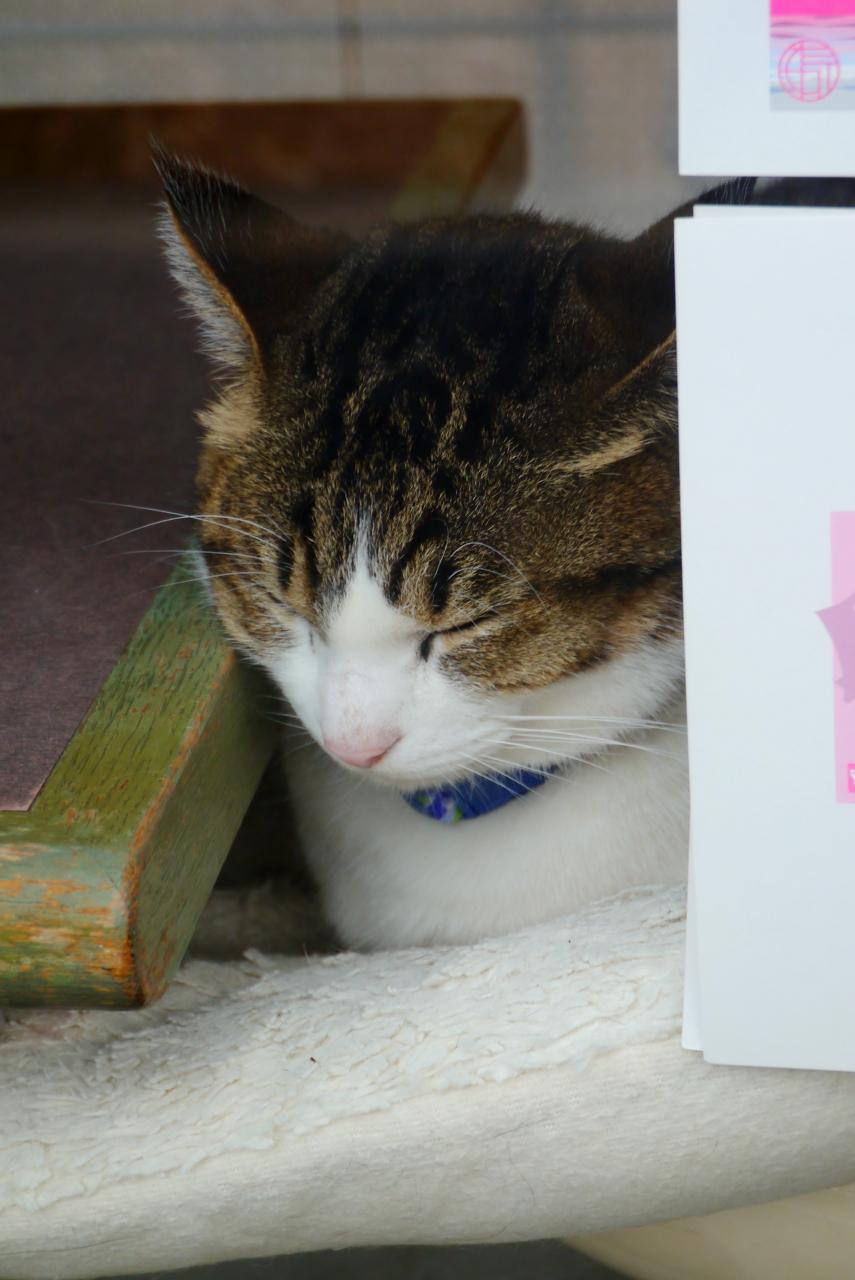 看板にゃんこがお昼寝していました。