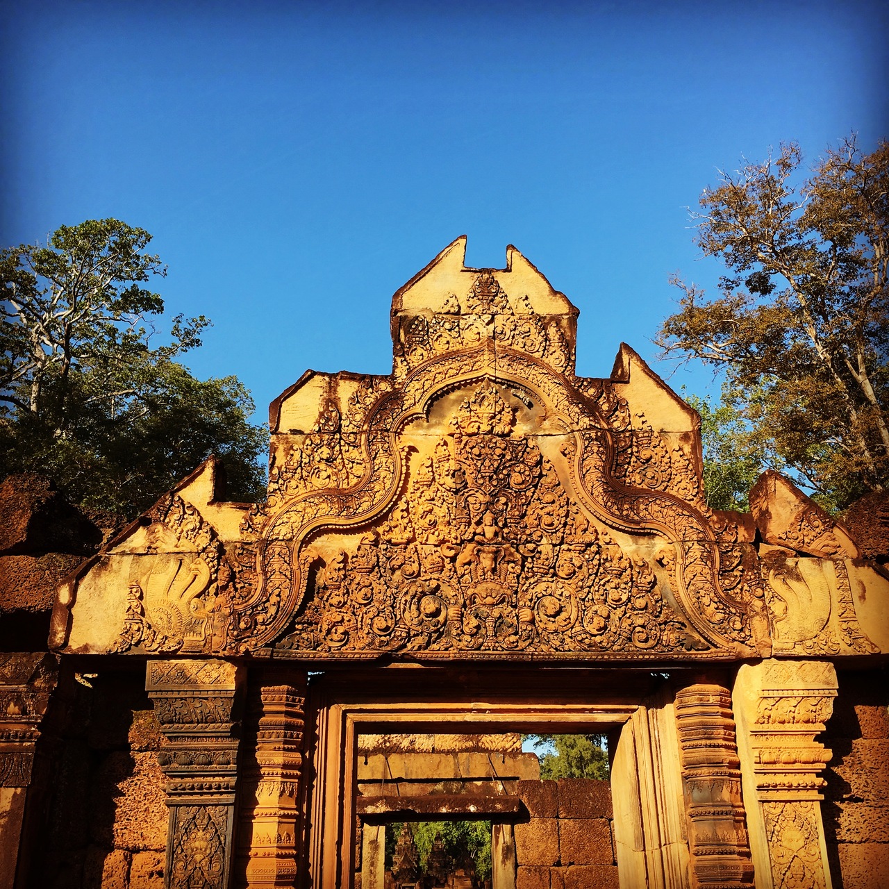バンテアイスレイ寺院は10世紀ごろ造られました。ヒンズー教をお祀りするための建造物です。