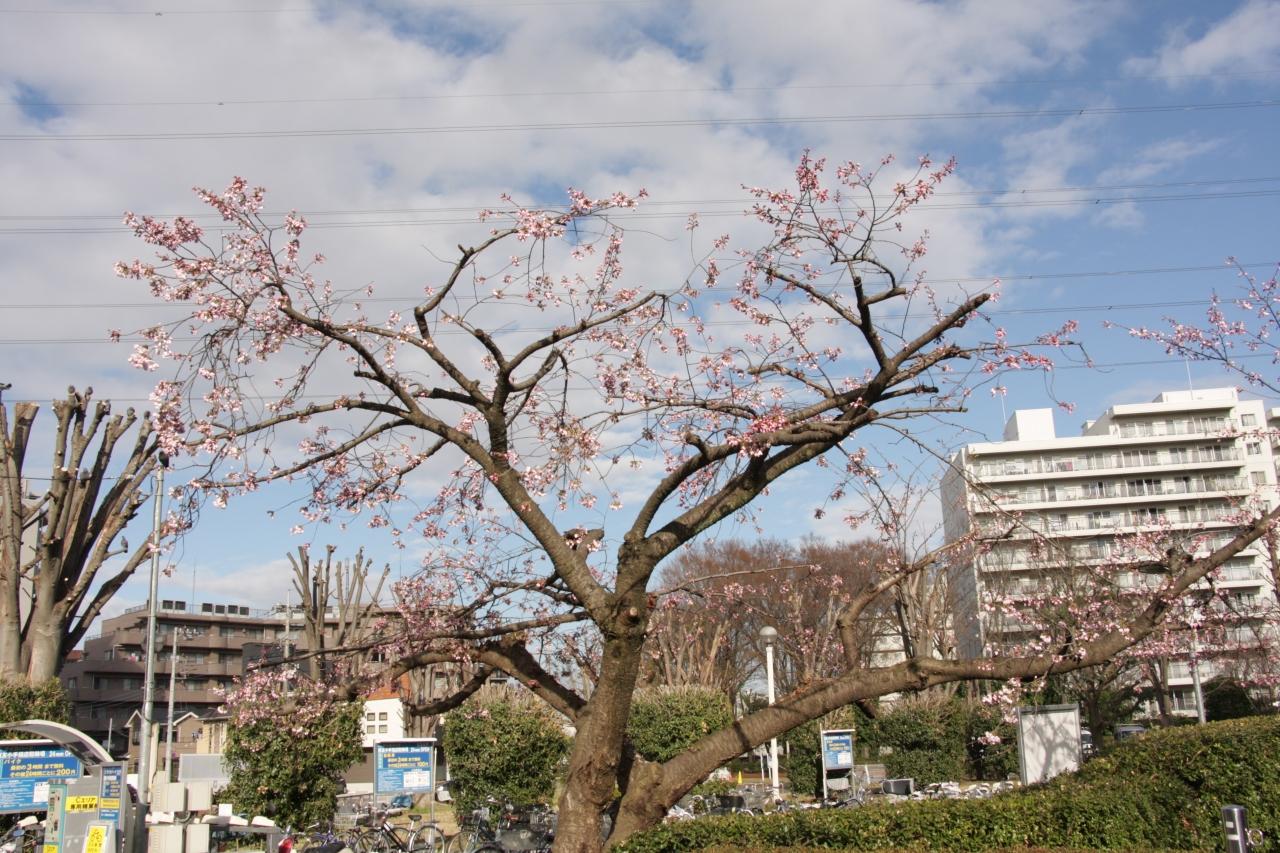 西友小手指店のポトマック桜は開花しました。1分咲きです。15:44