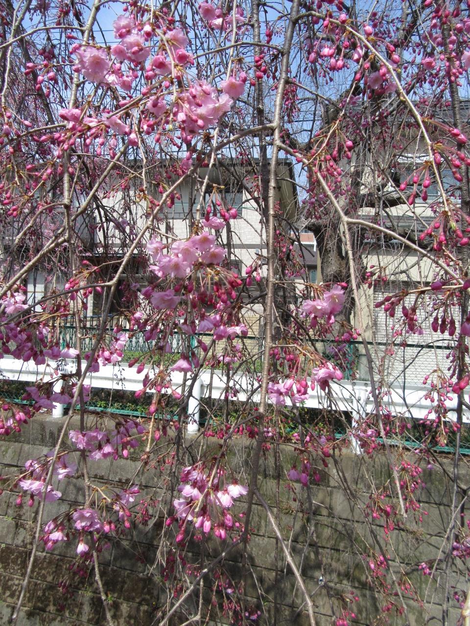 堀に垂れ下がった枝にもいくつか咲き始めました。15:19