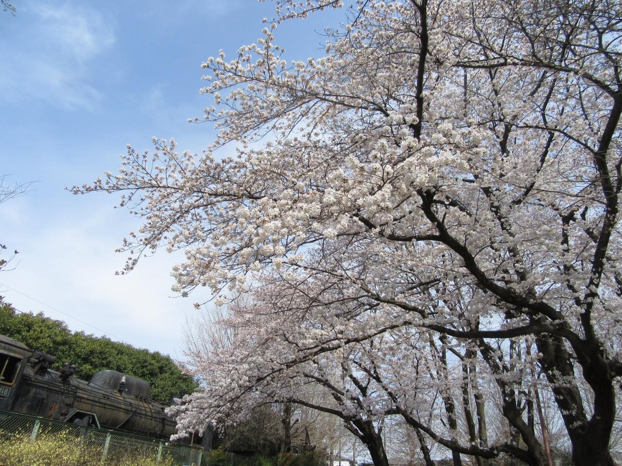 雨が降らない日が10日以上続き、気温も平年よりかなり高く推移したためか、車両基地に近い西側の桜もほぼ満開となりました。