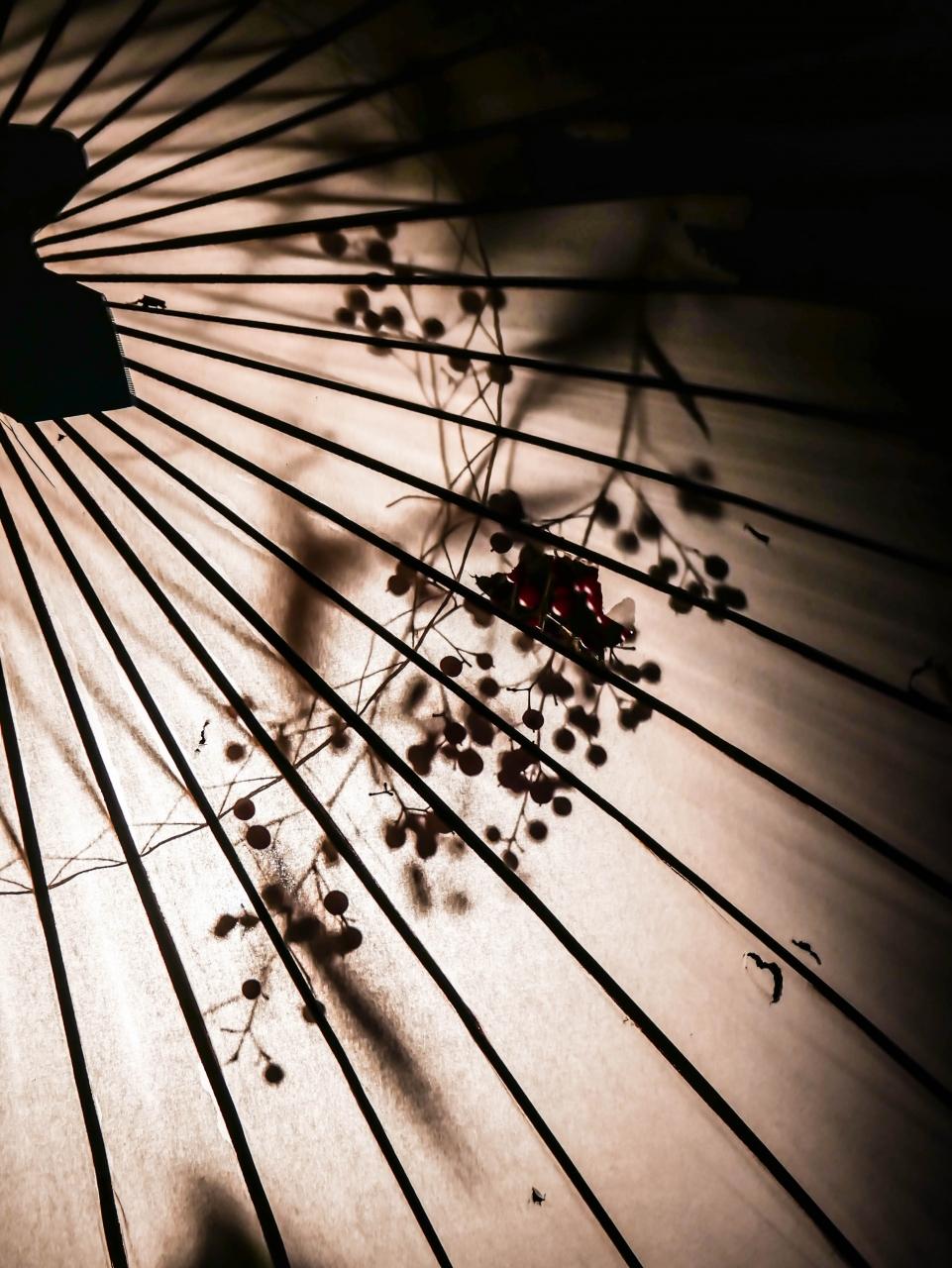 少し早いお花見。優美な和傘の飾り。