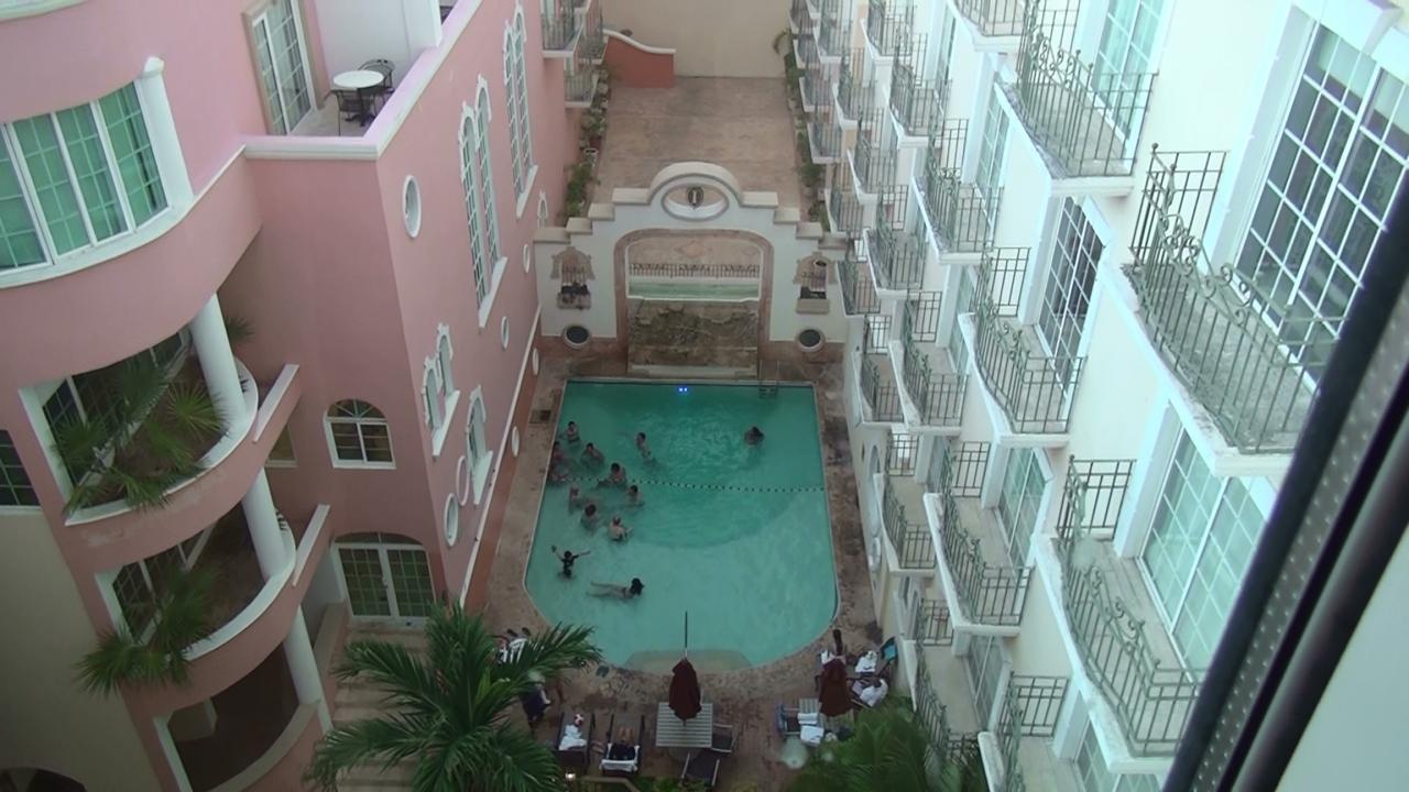 ホテルのパティオにはプールがあって欧米人が泳いでいました。