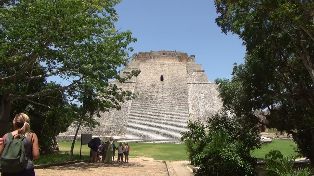 このピラミッドは「魔法使いのピラミッド」といい、丸みをおびた女性的で優美な姿を見せています。高さ35m。