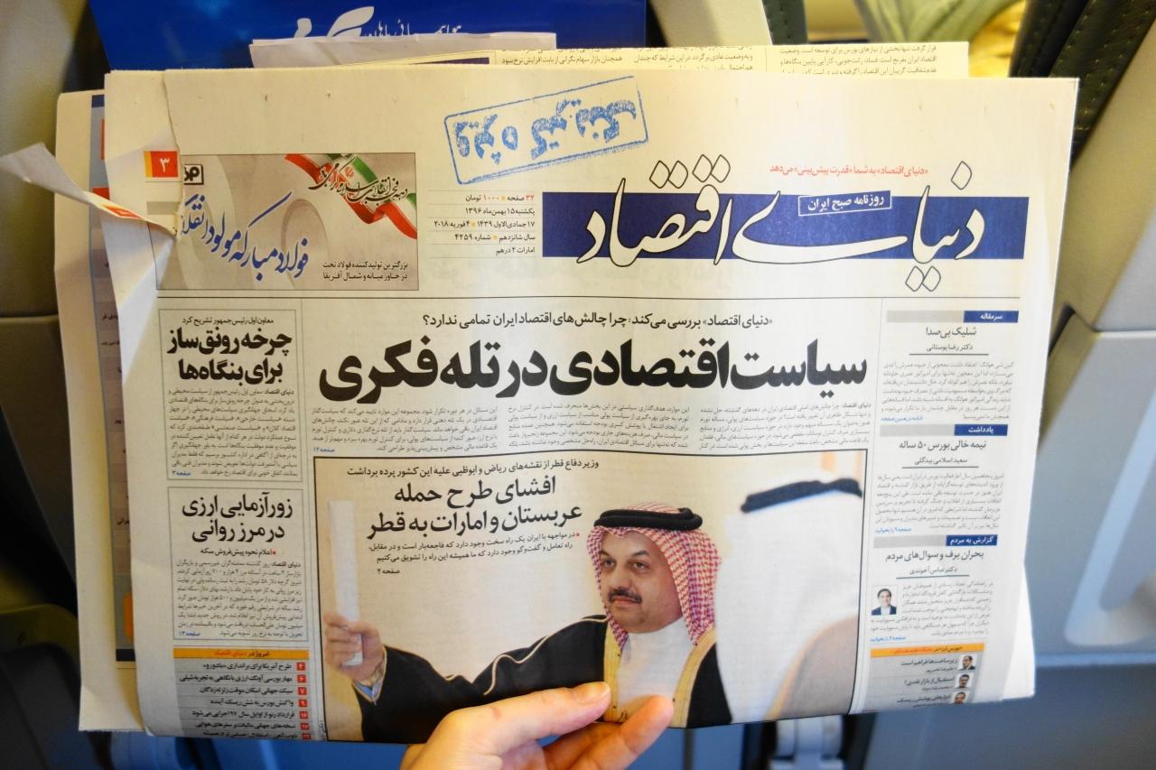 機内の新聞。