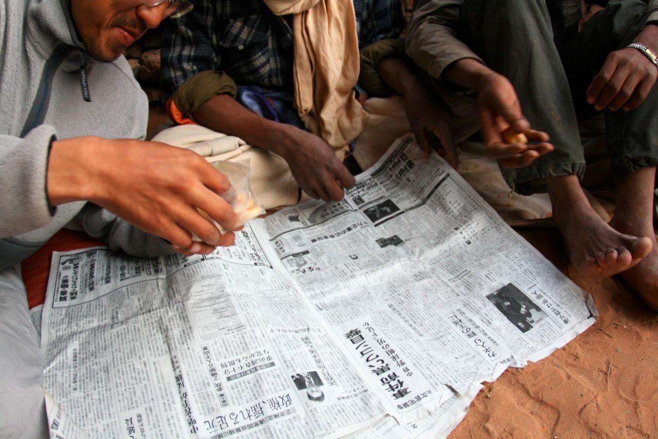 日本の作動とは偉い違いですが、なかなか面白そうです。お茶はミントティーだからなのか、苦み渋みはないです。砂糖を入れたりもします。砂漠でのども乾くはずなのに、彼らはあの小さなグラスでちびちびと飲んでます・・・あ〜じれったい。