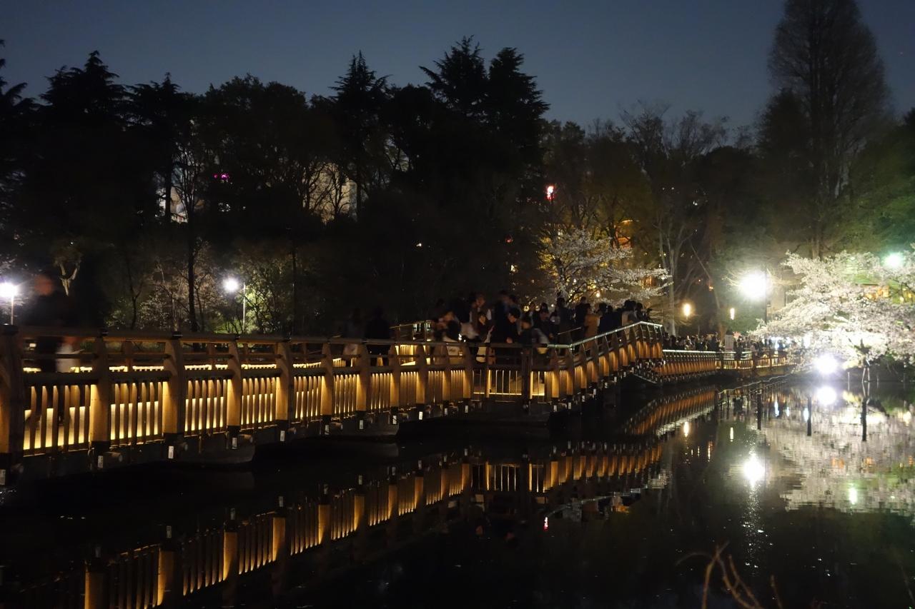 では夜桜編。学生さんや勤め帰りの人たちでかなりのにぎわいです。