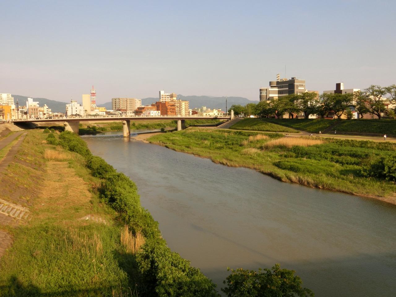 足羽川沿いに建つ