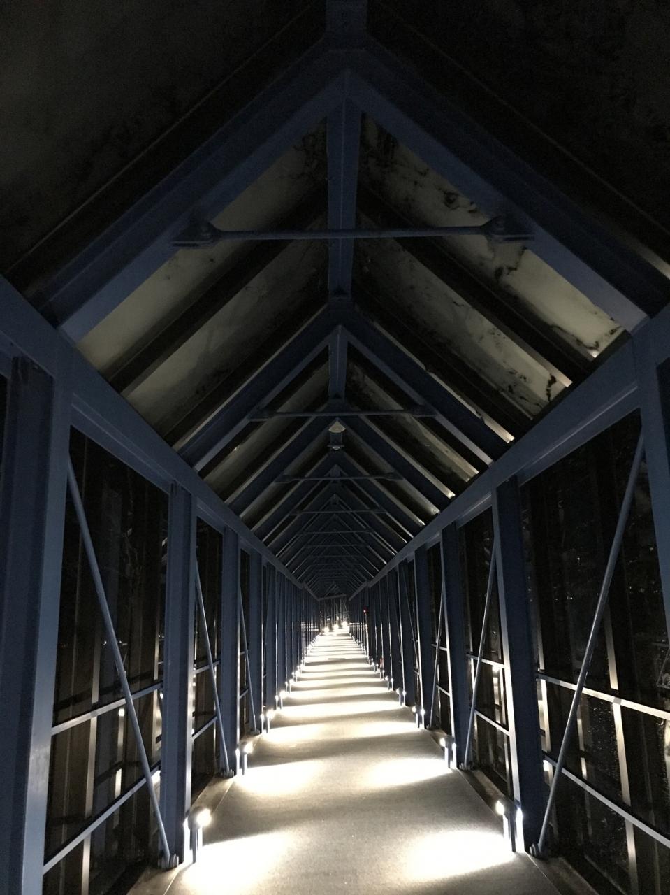 こんな風に、ガラスの通路がずっと森の中に続きます。