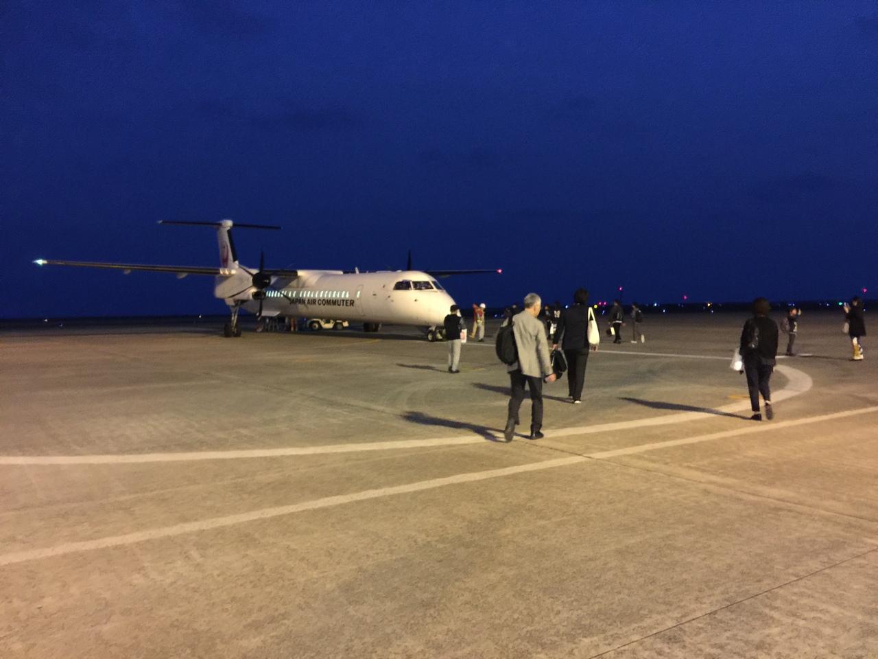 鹿児島への飛行機の搭乗の準備中