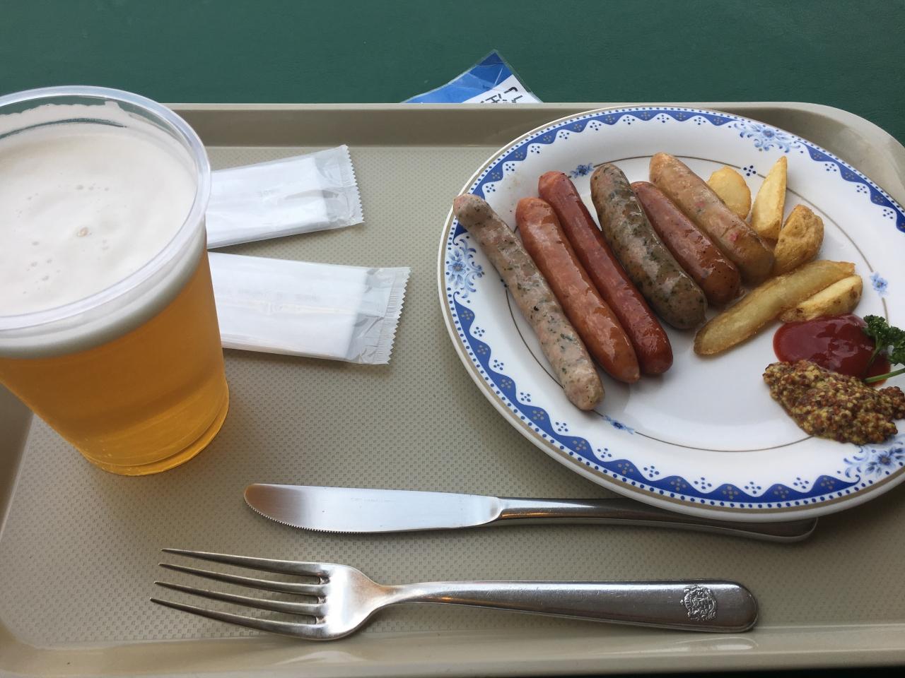 人気のアトラクションは2時間待ちです。結局ここは断念しました。なんかバーチャルリアリティーのアトラクションが多かったですね。ハウステンボス歌劇団を母が見たいと言っていたので、女3人はそちらに。俺は一人でソーセージ&ビールです。