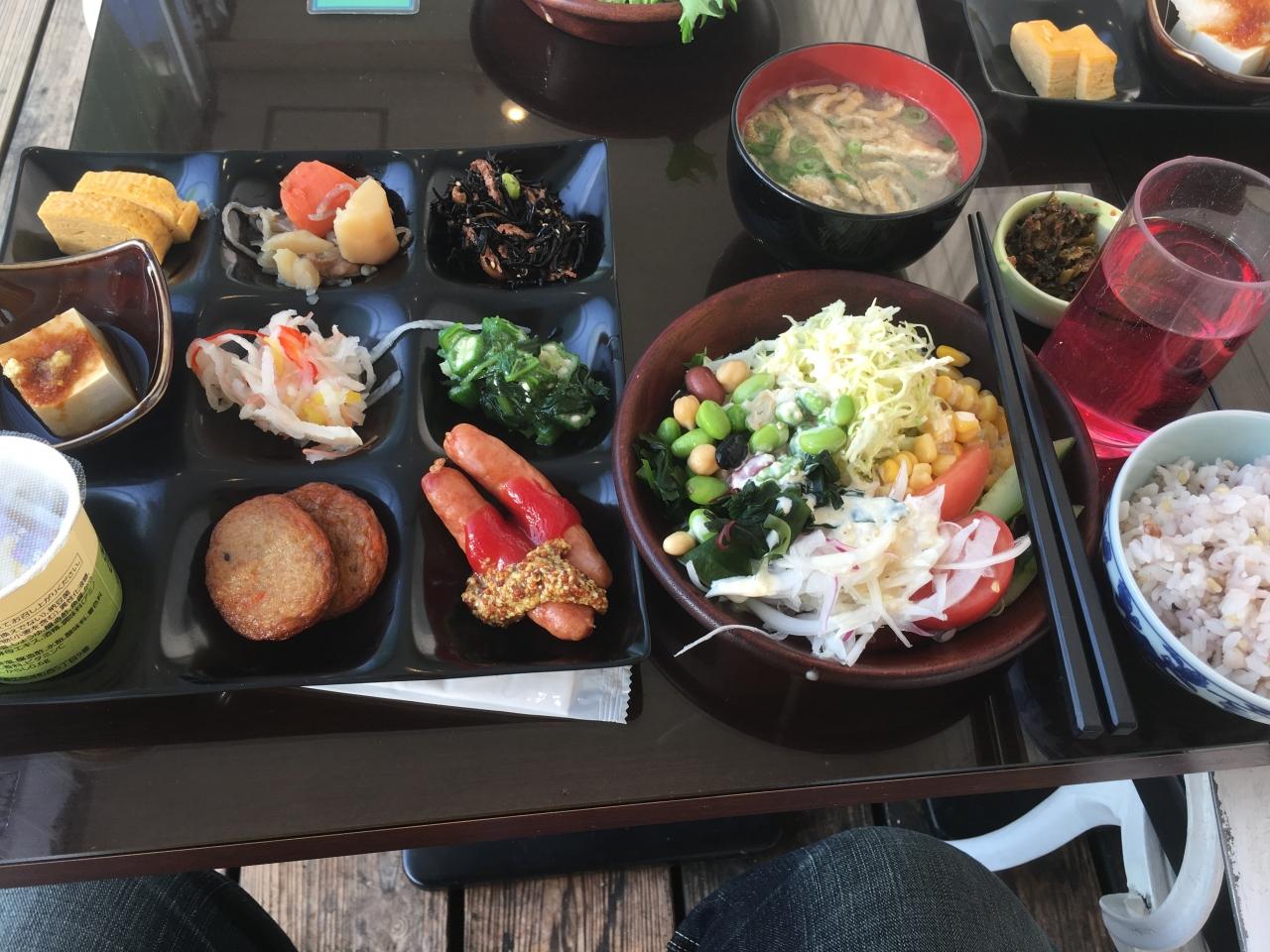 三日目の朝食だけかろうじて。健康レストランAURA。健康レストランでもビュッフェで食べすぎれば、健康じゃない気が…。朝からがっつり行かせていただきました。