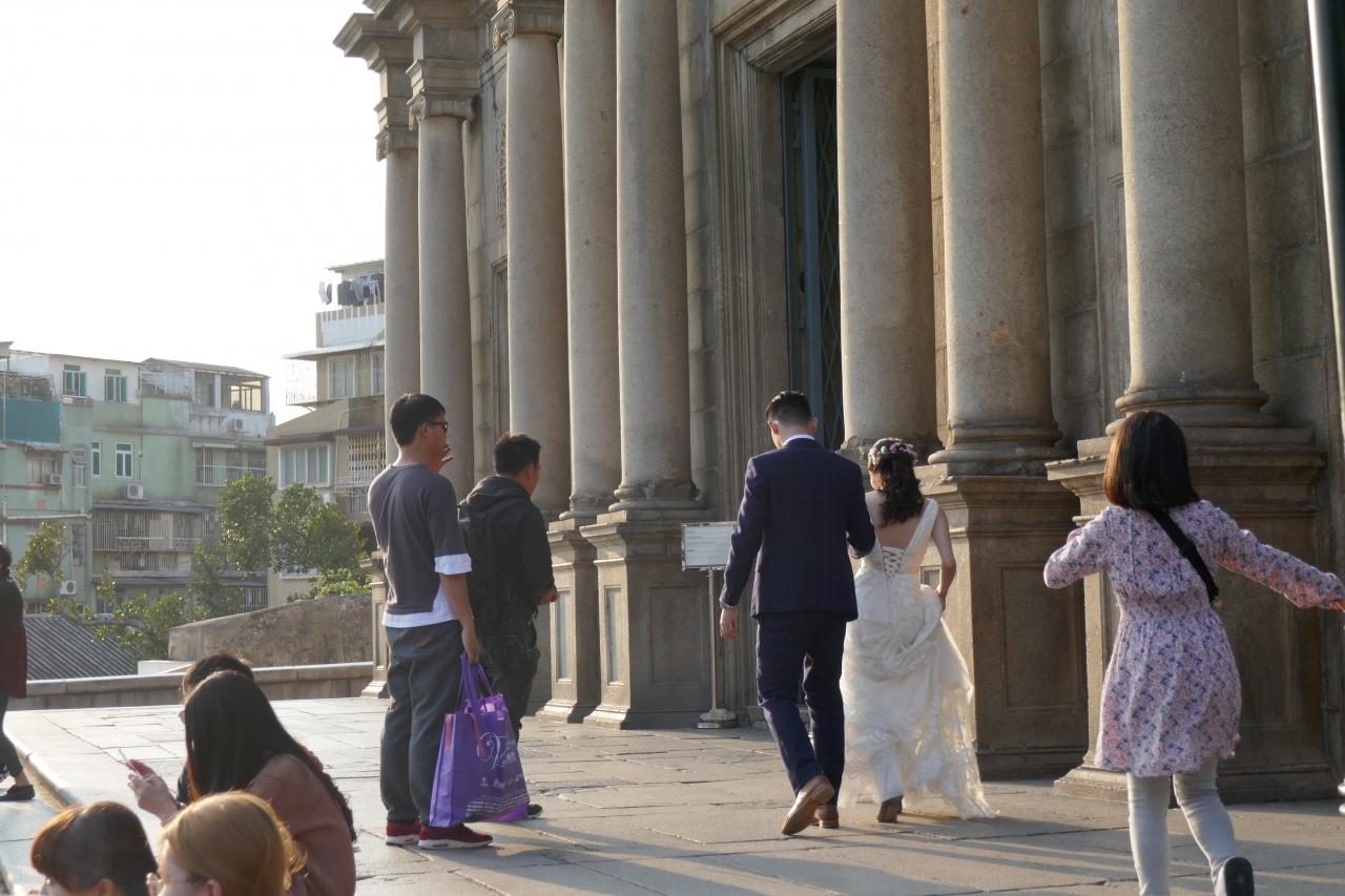 ギア要塞から再びバスに乗って聖ポール天主堂跡まで帰ってきたら、ちょうど結婚写真を撮ってました。