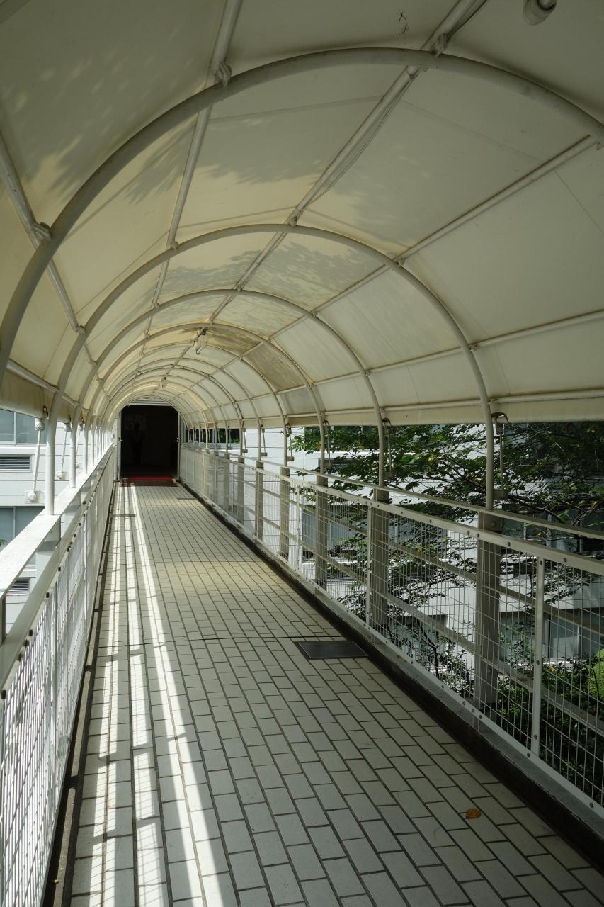 豪華さに圧倒されて出て来ました。この通路を渡った向こうにお土産物ショップが在ります。何と、通路下は首都高速4号新宿線です。